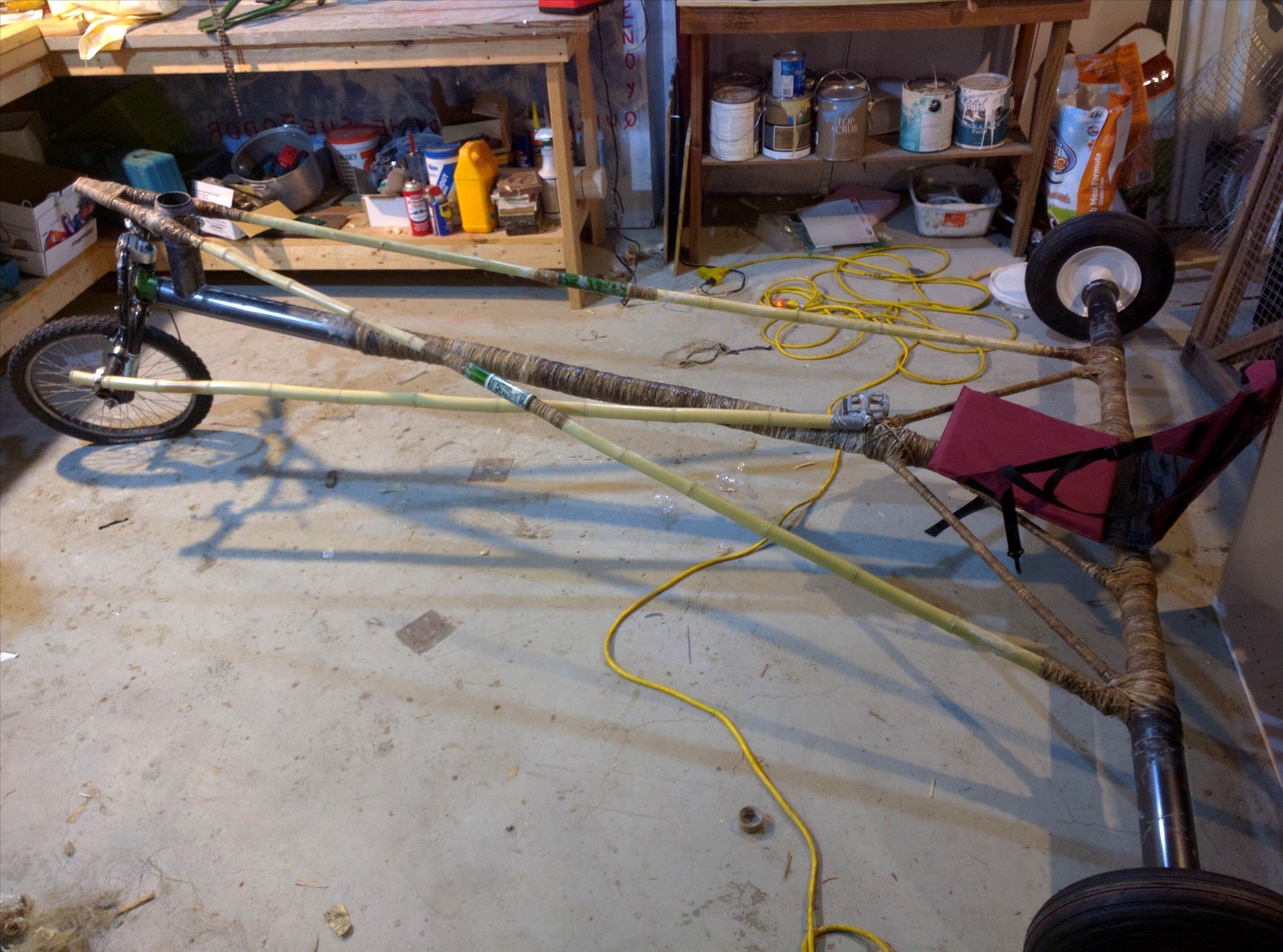 In the meantime, enjoy this pic. Remaining work: wrap the sway bars, install the steering rods, some kind of seat. Probably also touch up some of the joints.