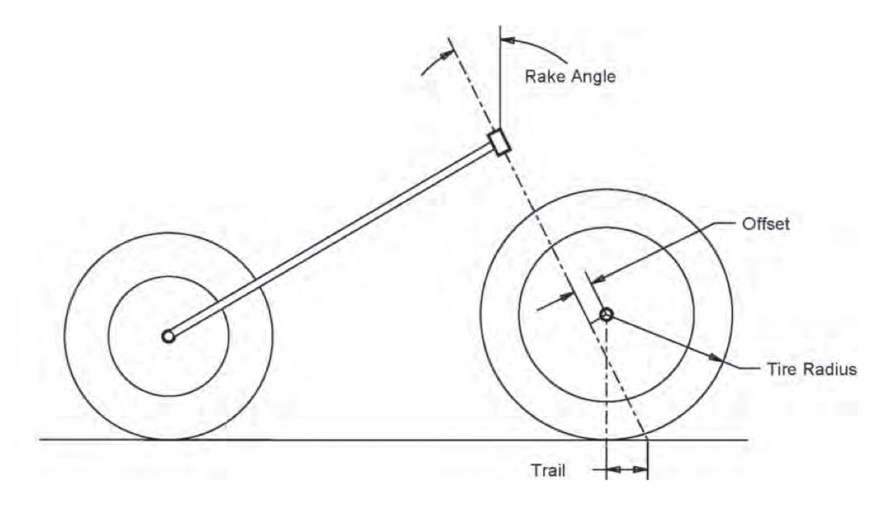 TRAIL=[Tire Radius x Tangent (Rake Angle)] - [Offset/Cosine(rake angle)]