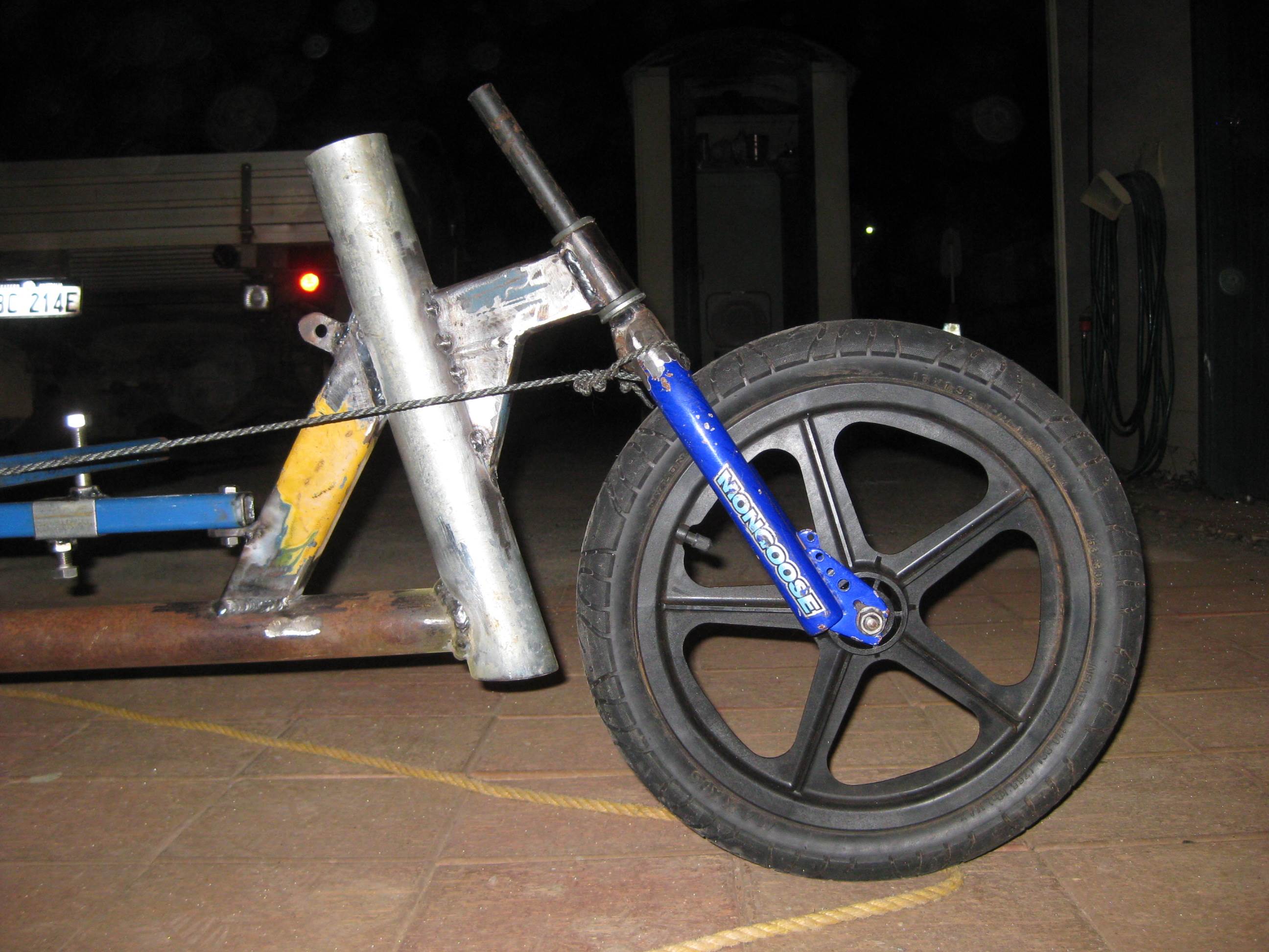 The front end is giving me a headache. I am tossing up running the fallshaw(big foot) front end or my skinny 16" BMX wheel.