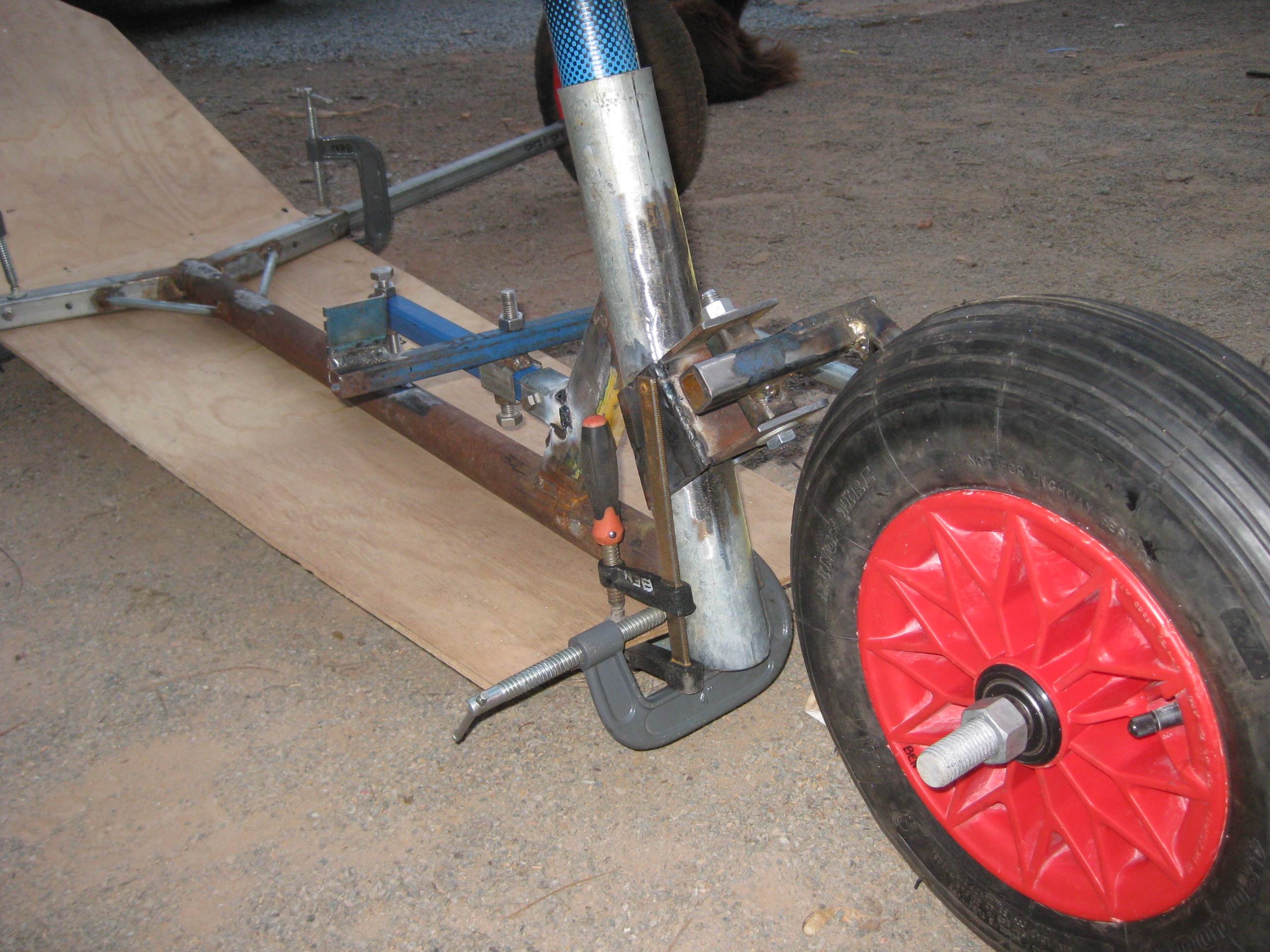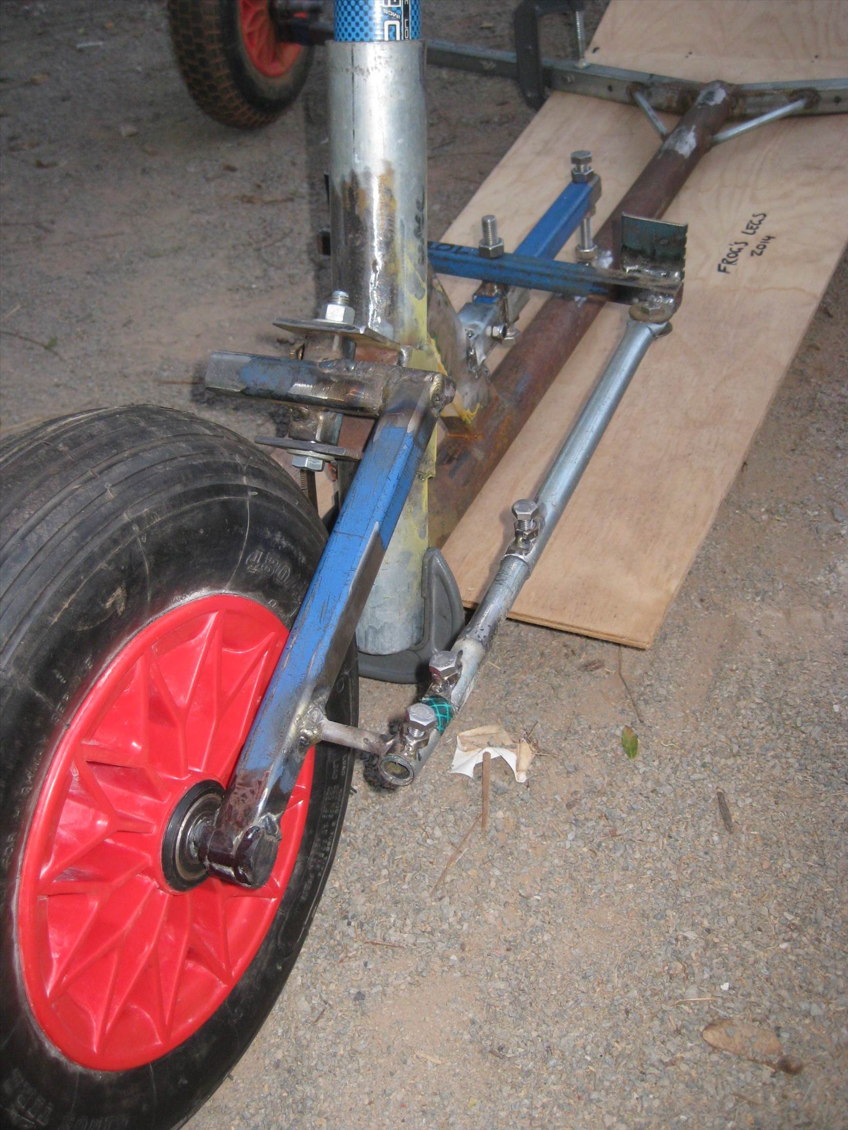 On the front wheel I make the horizontal piece across the steering pivot 6mm longer than needed (on the side that welds to the arm going down to the front axle).