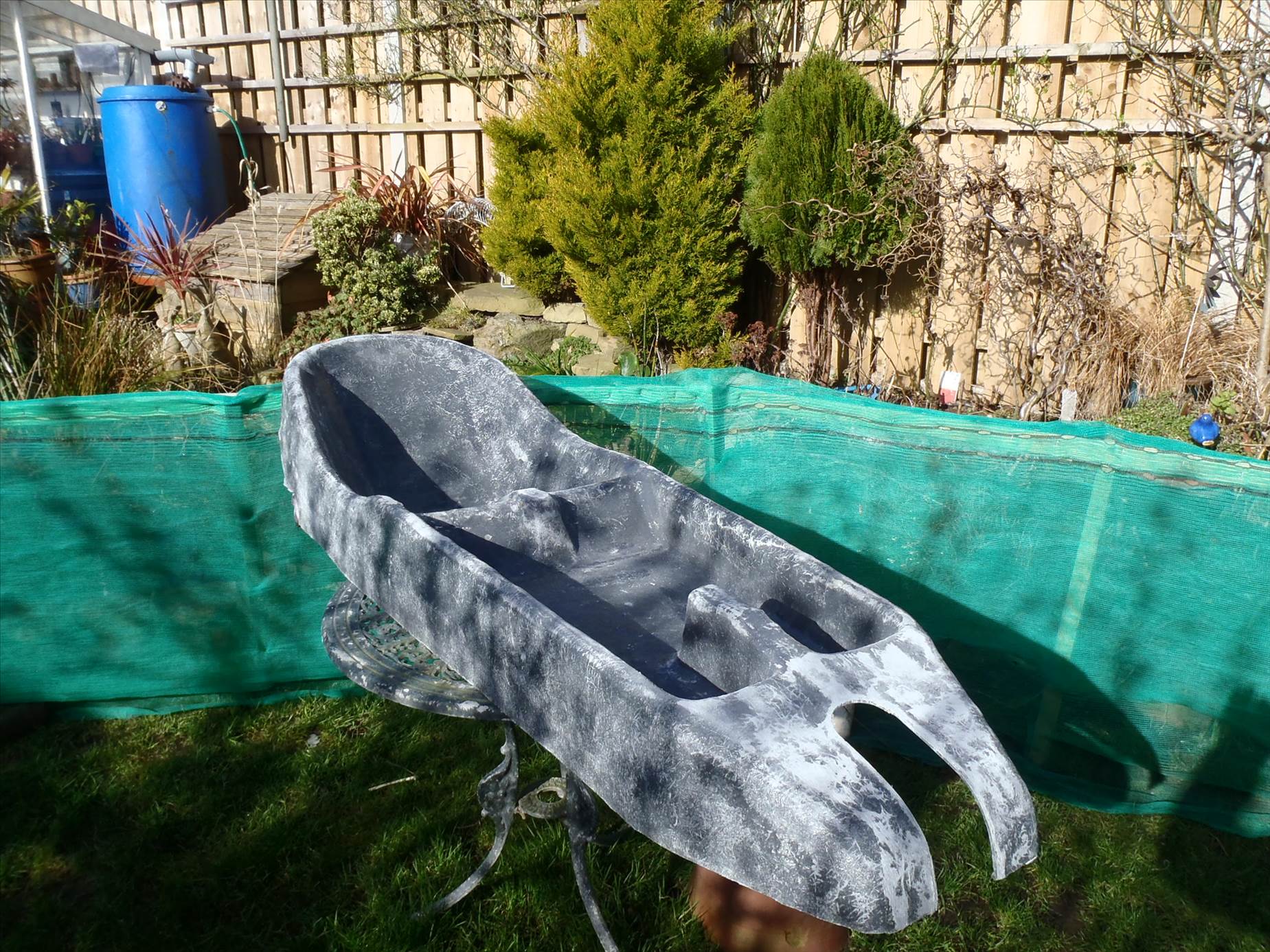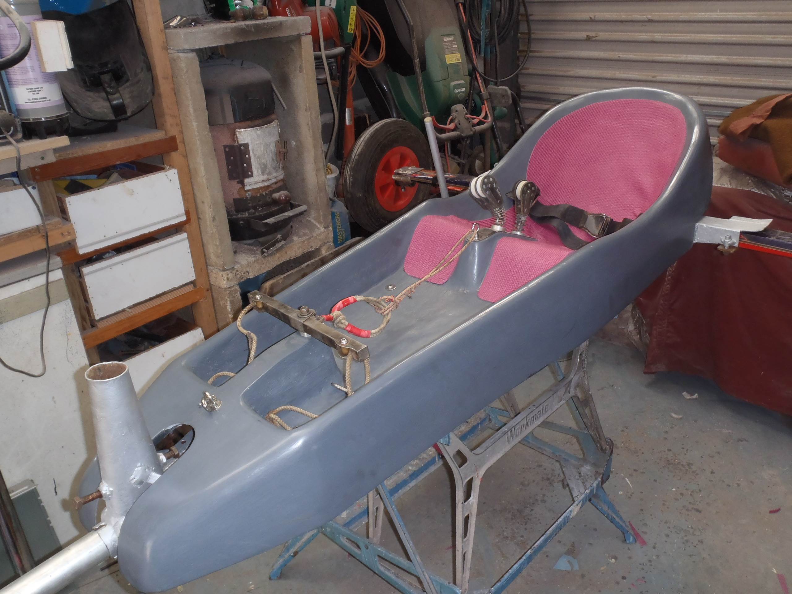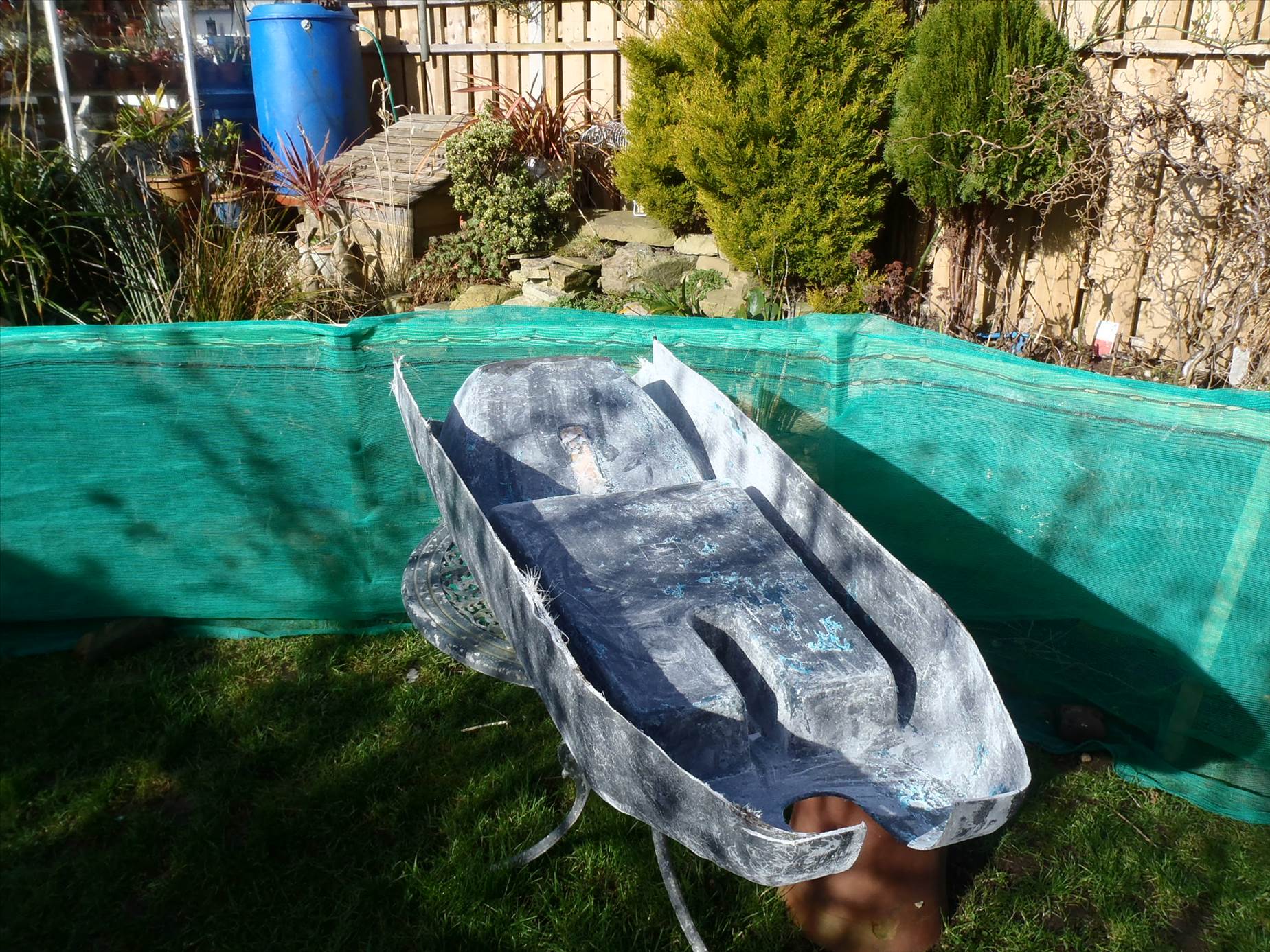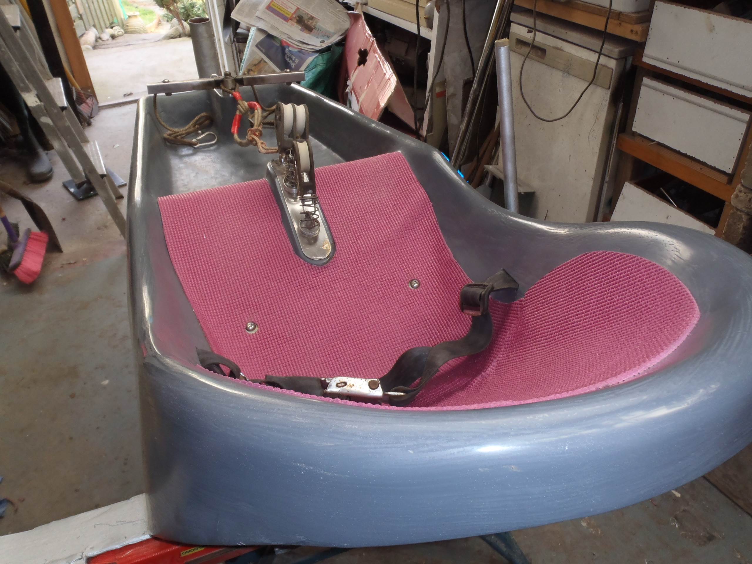 It now ready to go back to the workshop for three layers of 450gm CSM and then a top coat, hopefully this week but I need to get the temperature above 5deg so its very much weather dependent
