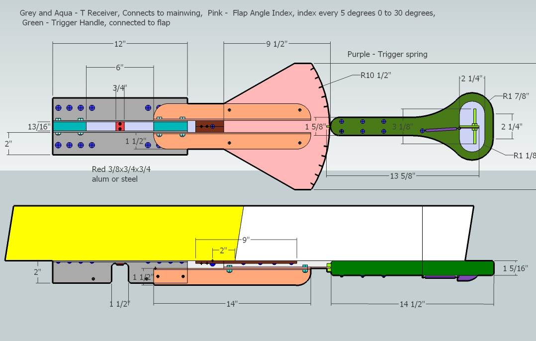 Controlling a solid wing. I use a simple chain and sprocket system for about 20 years. They are pretty reliable unless a fastener comes loose. Most of them I've made consist of a small sprocket connected to the control (steering) wheel. The main sprocket is connected to the wing pivot via chain to small sprocket. I line up my wing pivot point and side shrouds to have less load on the system. I choose about 25% of the total wing and flap surface in front of the overall pivot line.