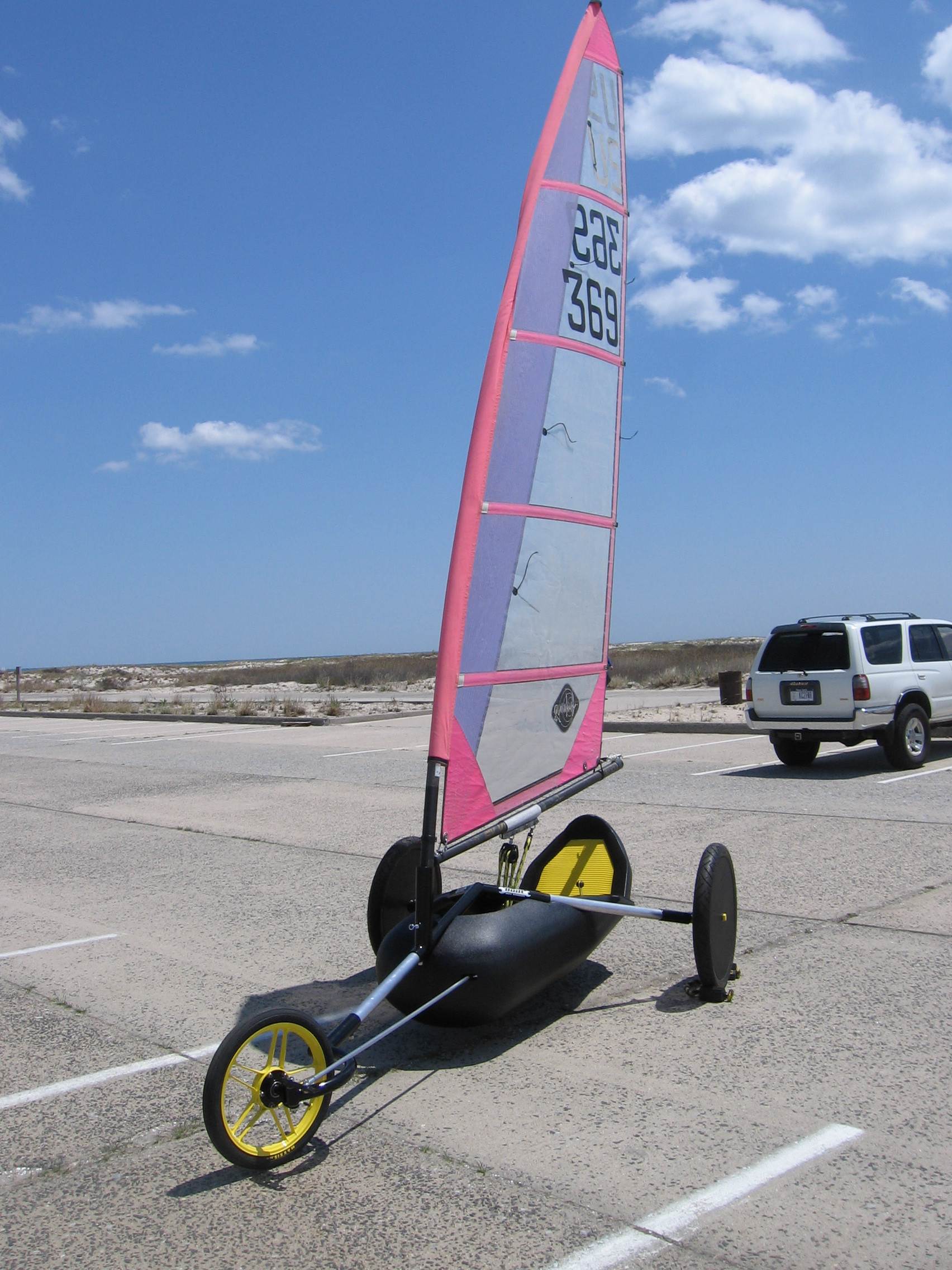 My first thought is the mast looks like a standard windsurfer mast. Way too soft for a landyacht.