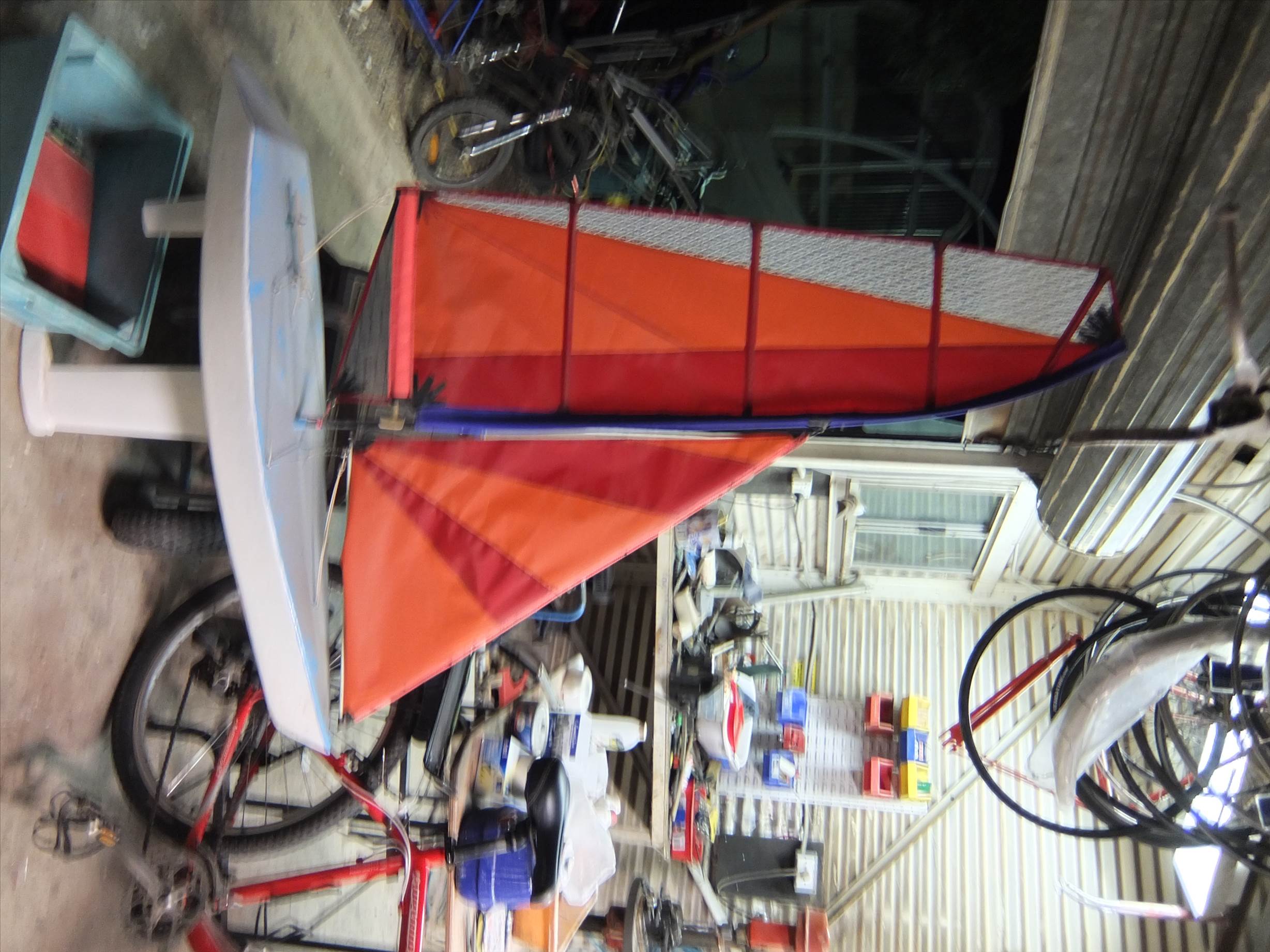 the mast is a pulrtuded carbon hollow round batten sitting in a peice of fishing rod through the deck to the keel. the top of the mast is the flexible batten tip with alot shaved off. the cut and luff tensioning is actually a copy of a blokart sail.