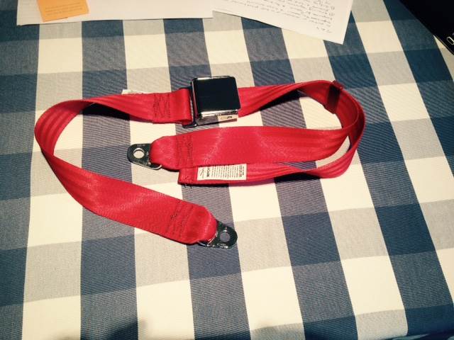 The rather fetching red matches the seat colour and also serves to remind me what colour liquid is likely to be produced if I don't wear the belt