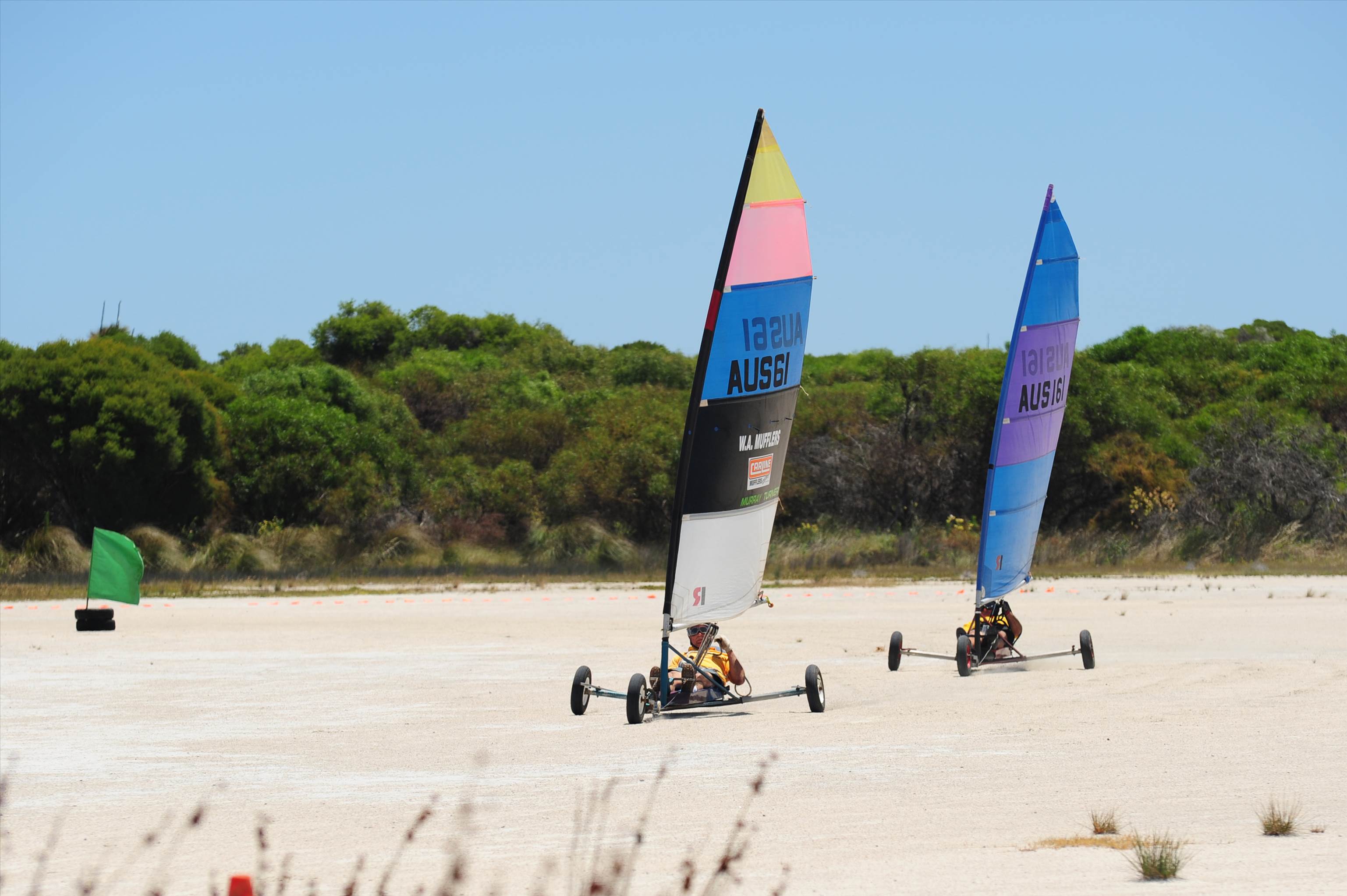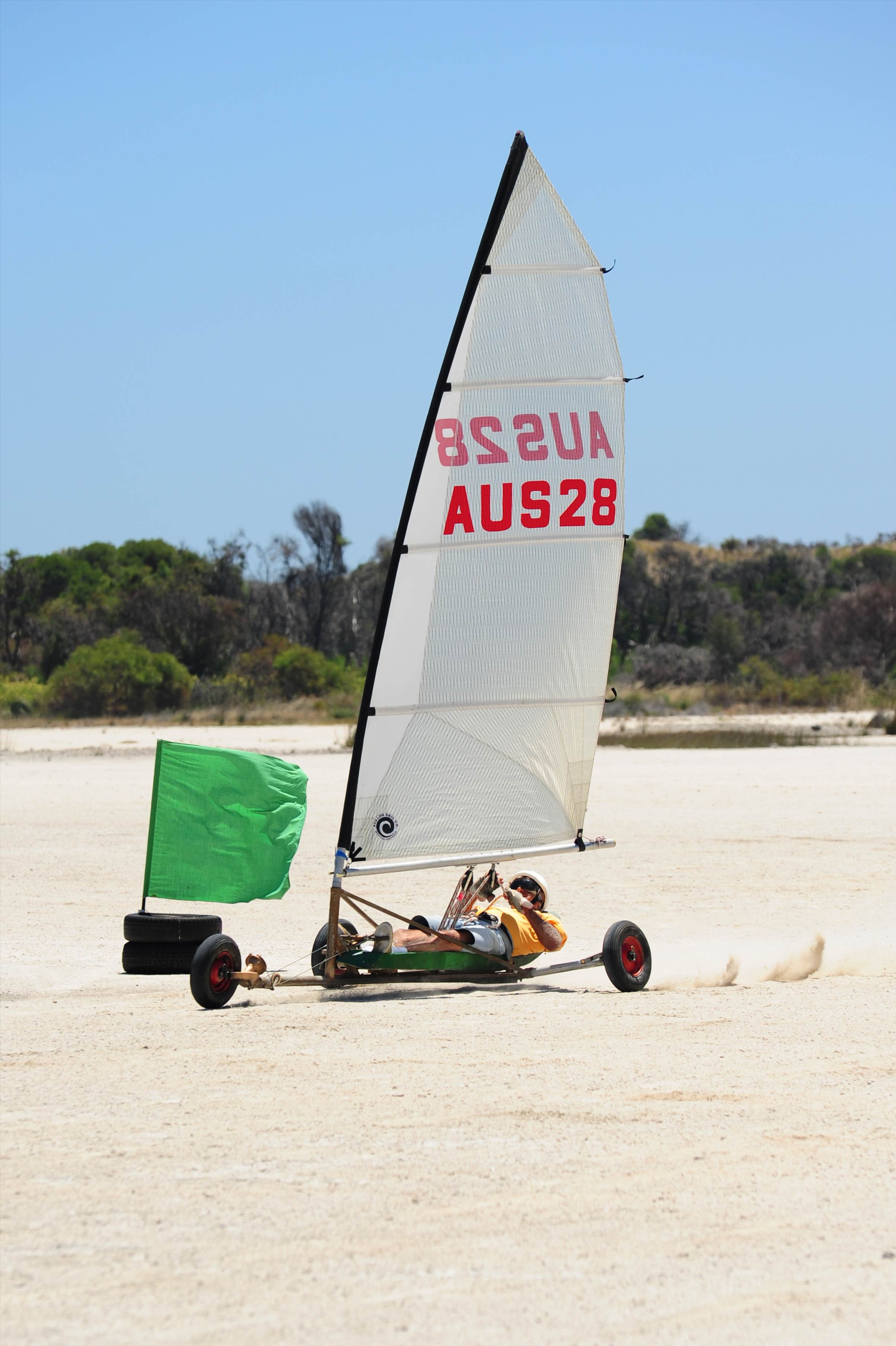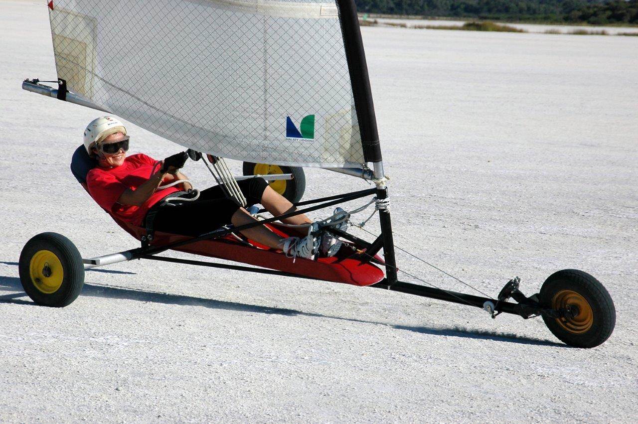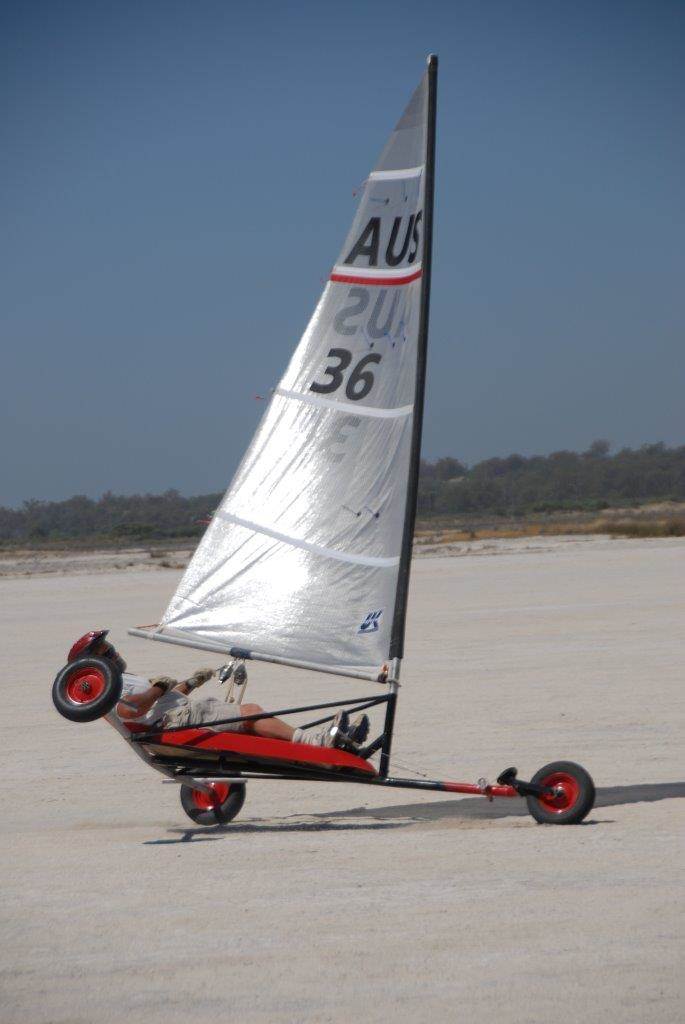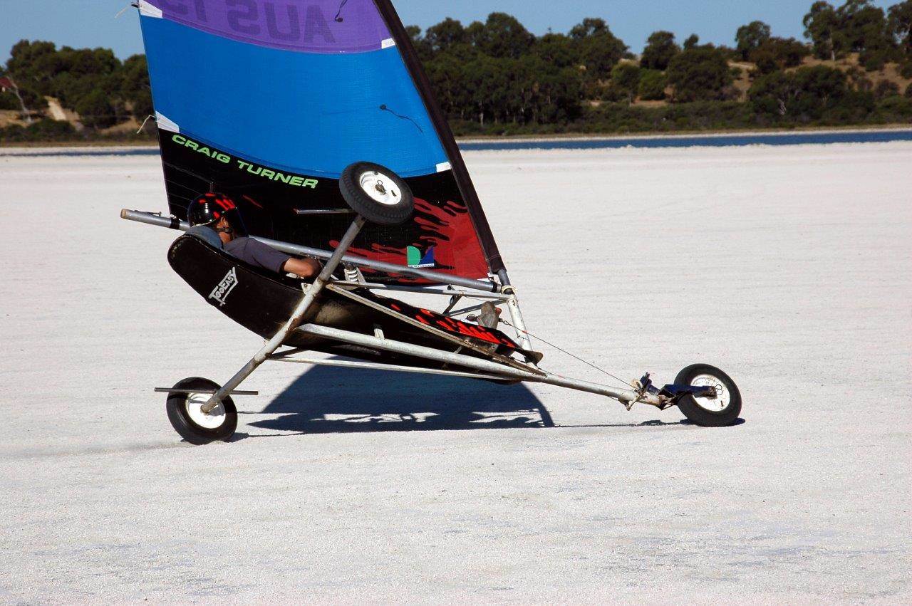 My mate Crazy Trav at Lake Lefroy a couple years ago (land yachts are not supposed to fly)