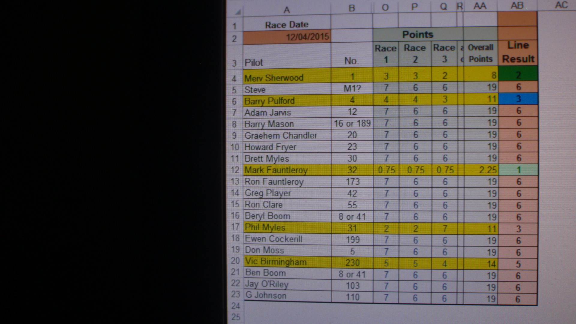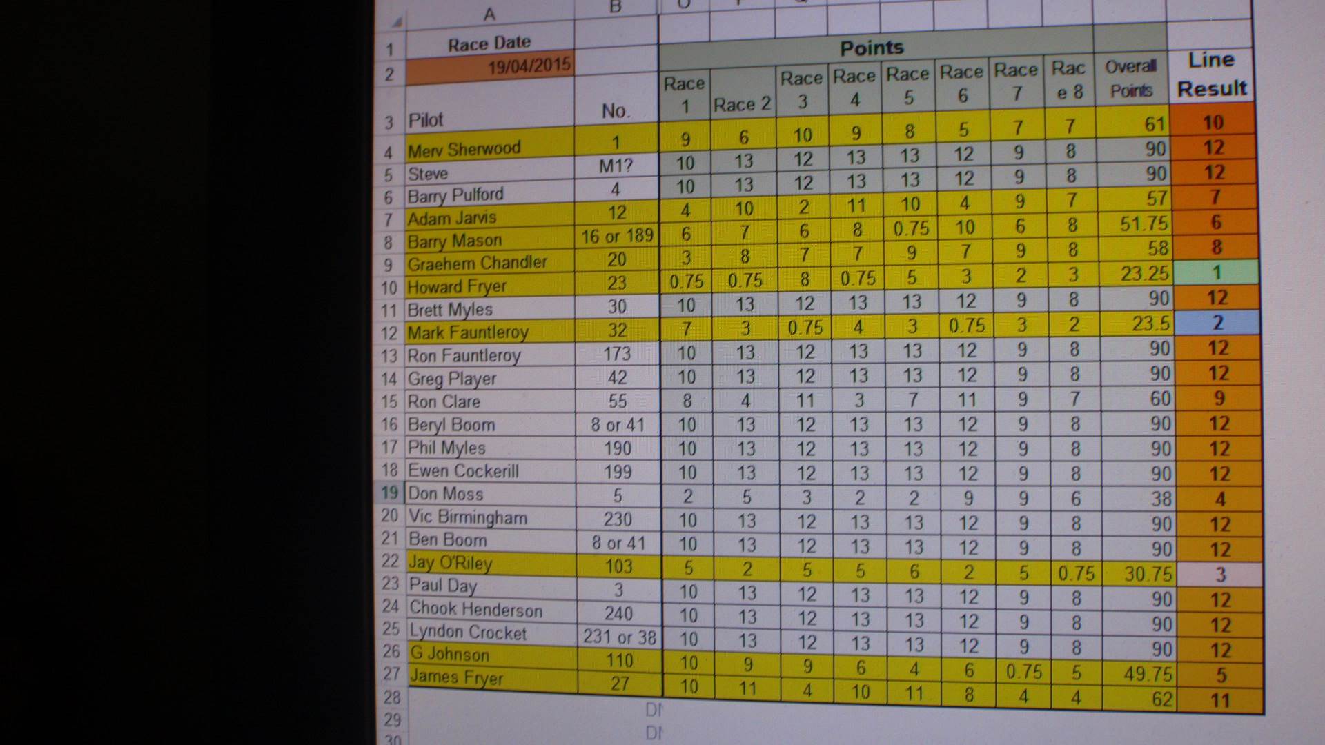 I have been away a bit lately here are the results fot the club88/class5 handicap day for the 8th March