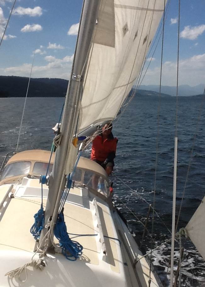 Yesterday we sailed down to Eggs and Bacon Bay on the Huon and picked up our mooring in the bay for lunch