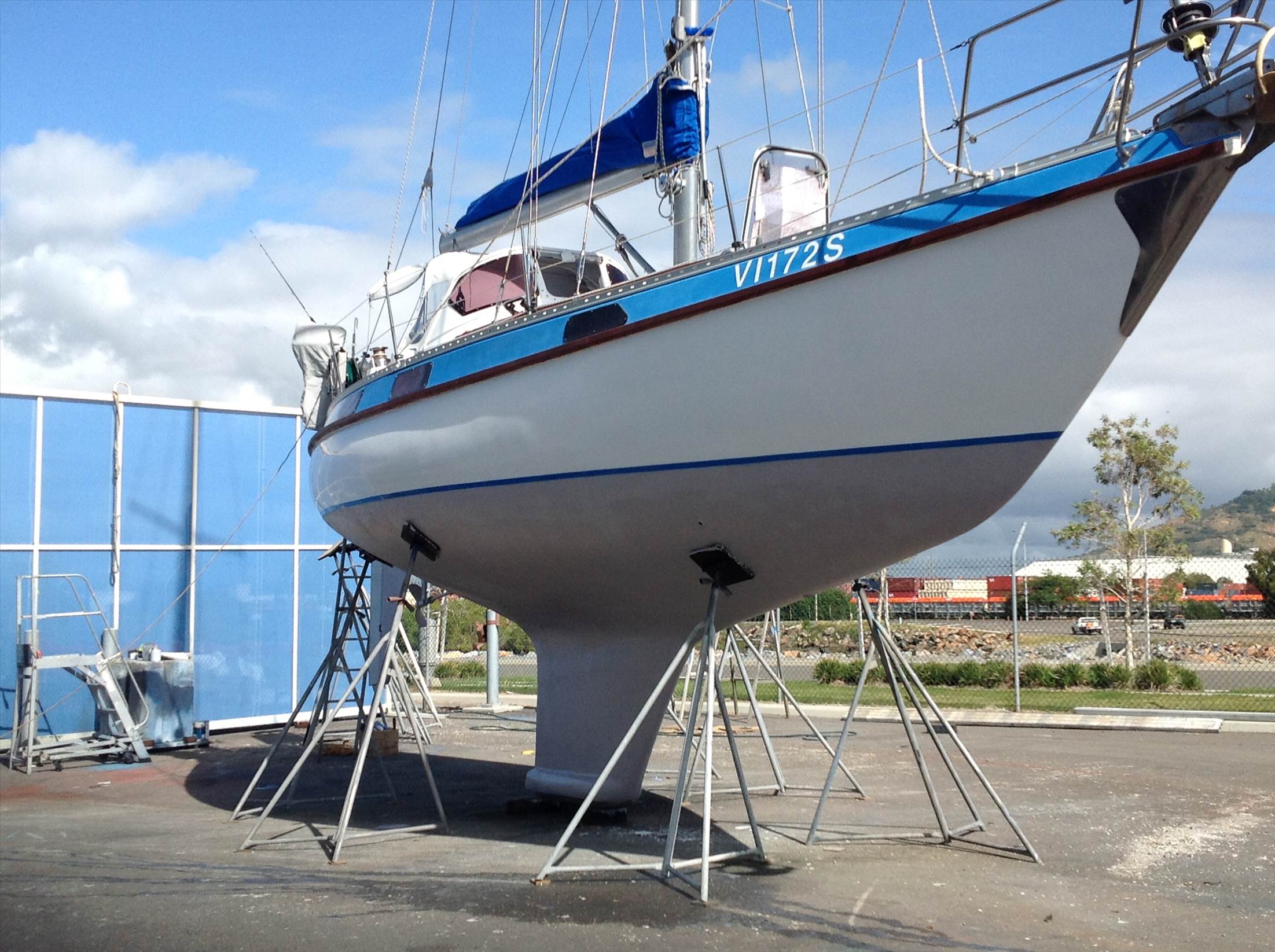 Had the honour to cut n polish the sister ship to my old Sea princess. First time she's been out of the water for years ..built in 81 original gelcoat came up a treat. Could see the woven rovens in the gloss.. My Sea princess was sprayed in 2 pac but I enjoyed cutting the 30 year old gelcoat. Aparently Trojen is teak fit out below. Bloody beautiful yacht the Dunc 37 C/C.