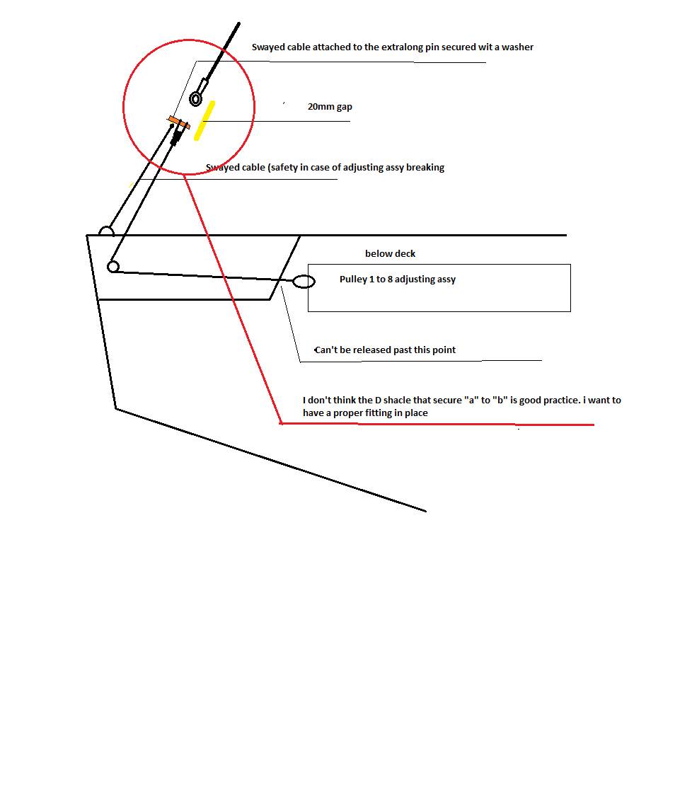 Bit hard to see what is going on there. Got more photos showing more of the connections? What is the swaged eye cable for? Hard to tell what the split pin is doing.