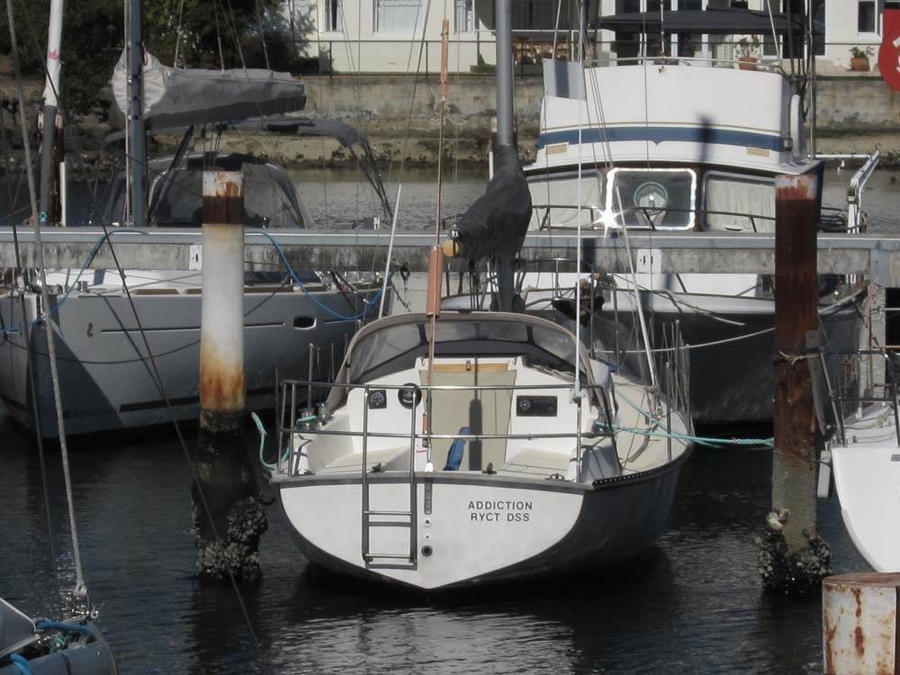 I have no trouble getting on board with this ladder. [PS Mk 1's have a lift out at the stern which makes planned entries easier]
