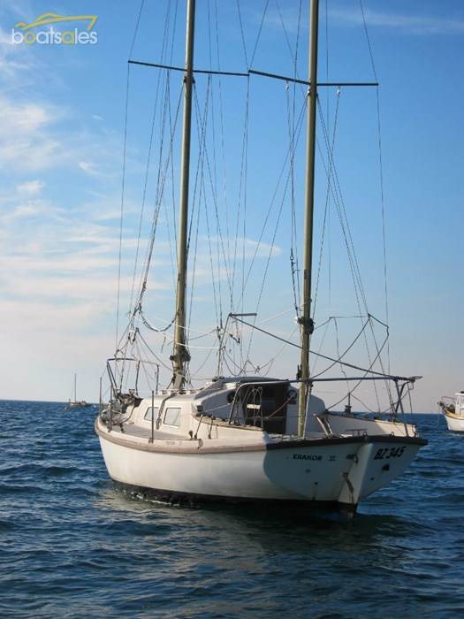 Lin Pardey and her husband built one out of Teak this one fiberglass .Ive never been on board but the hull and rig are very sound I can just make out a butterfly hatch on the cabin roof from my boat. $24000 He has genuine reason to sell