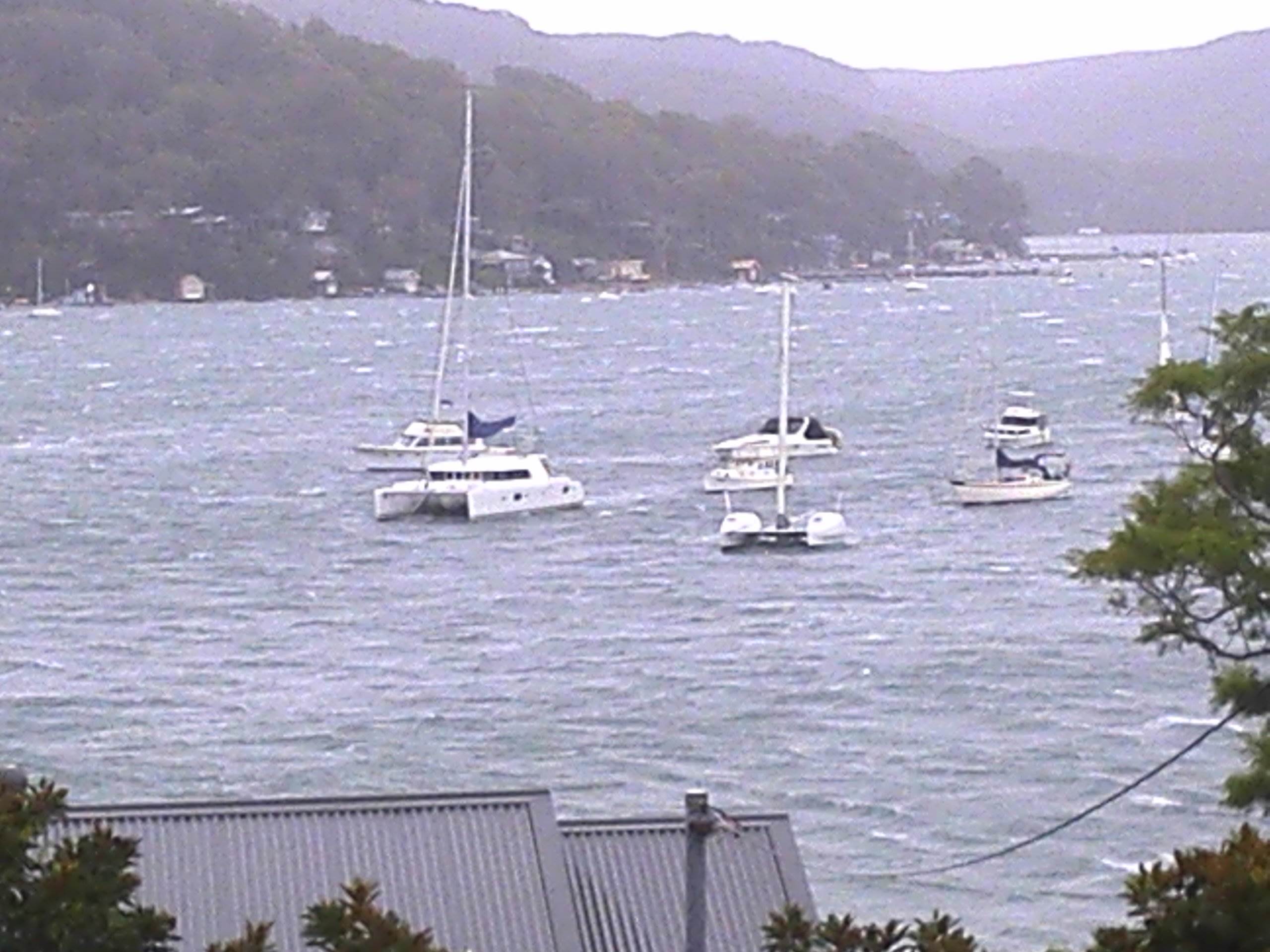 With binocs I saw a yacht over Mosman way (north side) with a loose foresail - when I looked away for two minutes and came back to it I couldn't see it so hopefully it tore off (rather than the boat tearing off the mooring)