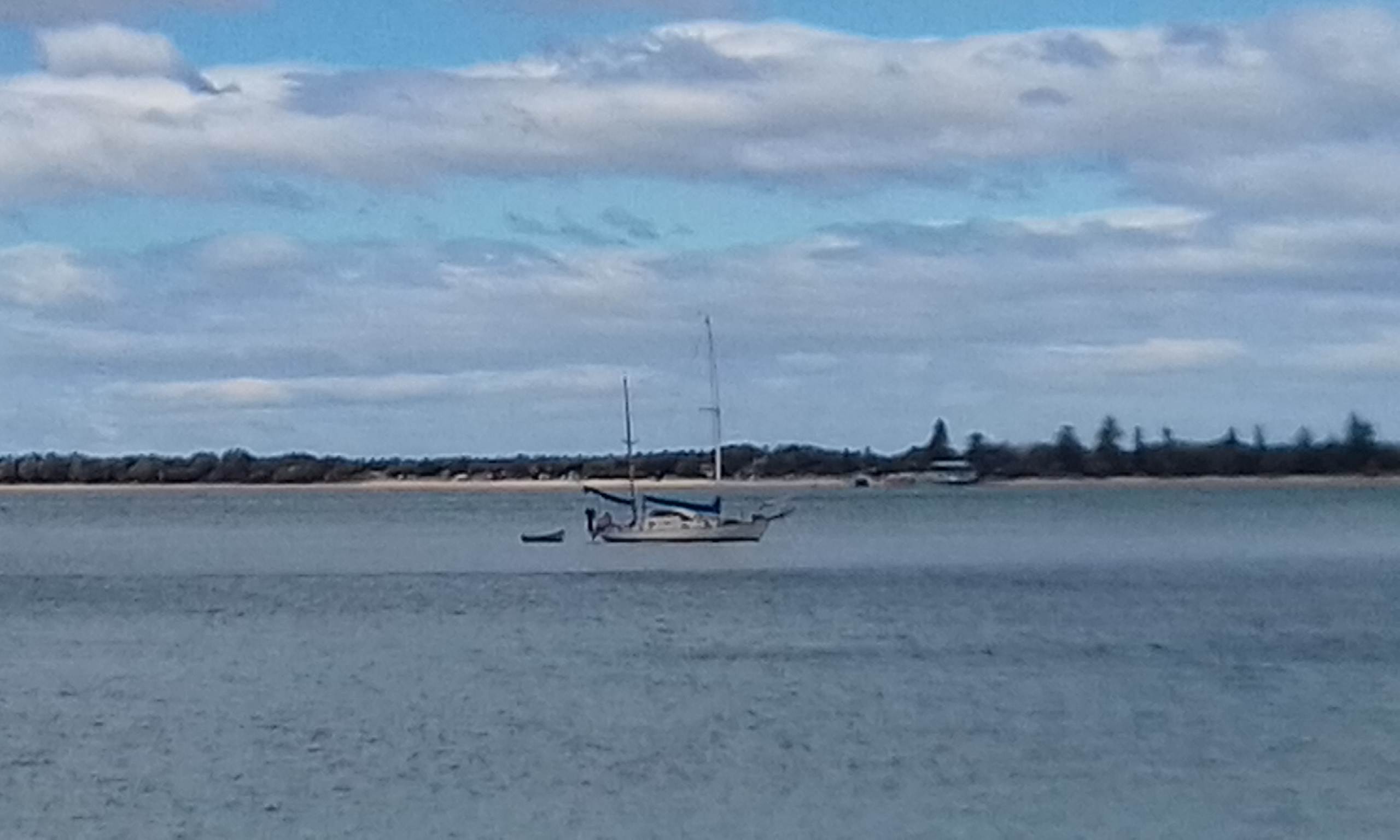 Sorry for the rubbish picture taken from resolute beach today. This mast looks quite bent back with the headsail lying along the mast. Why would that be?