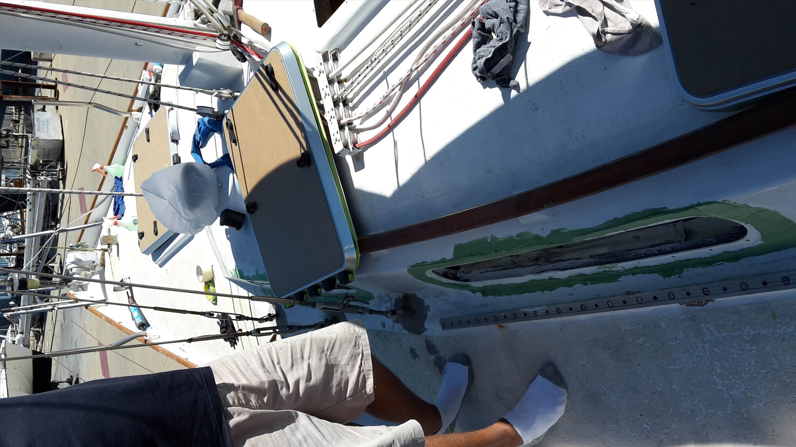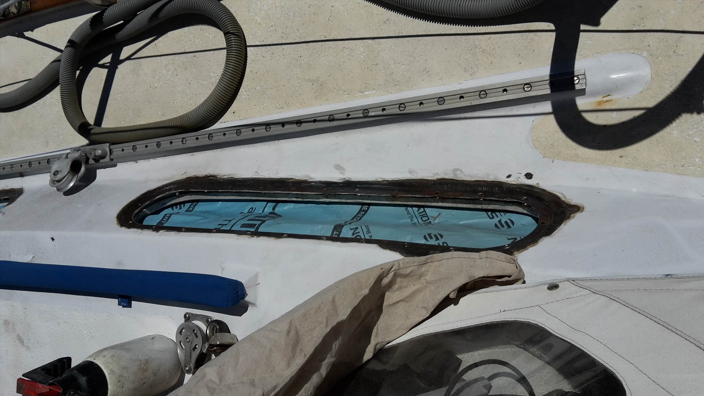 Our cabin top fixed windows were leaking a bit. The old outer sealant around the edge of the windows was dug out as much as possible and neatly resealed with sikaflex 295UV. So far so good, no leaks and looks much better.