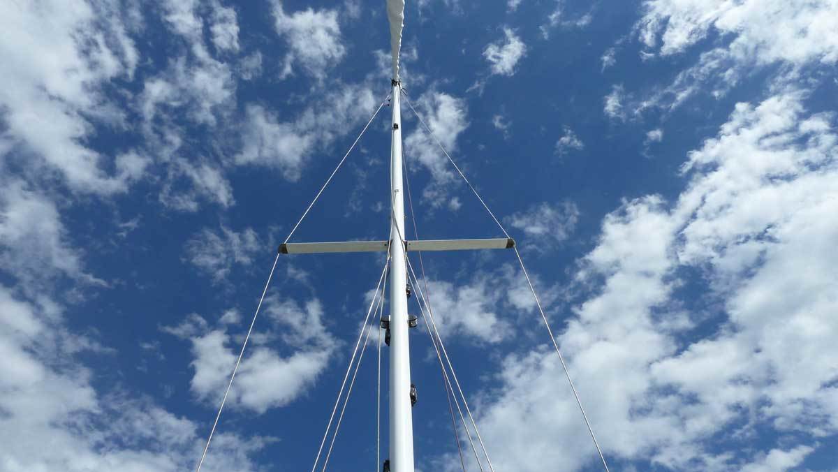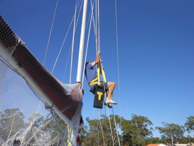 This setup works well when single handed and does not require any great strength to ascend the mast.