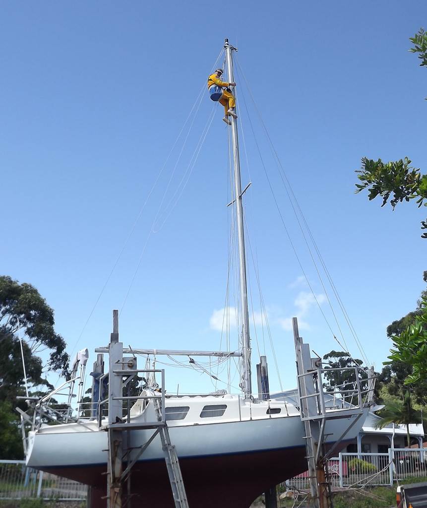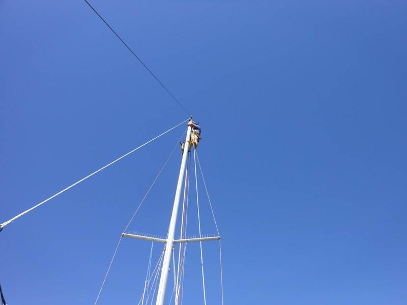 In this photo I spent 3 hours up there putting on four steps so that I can reach the top of the mast and work!![]()