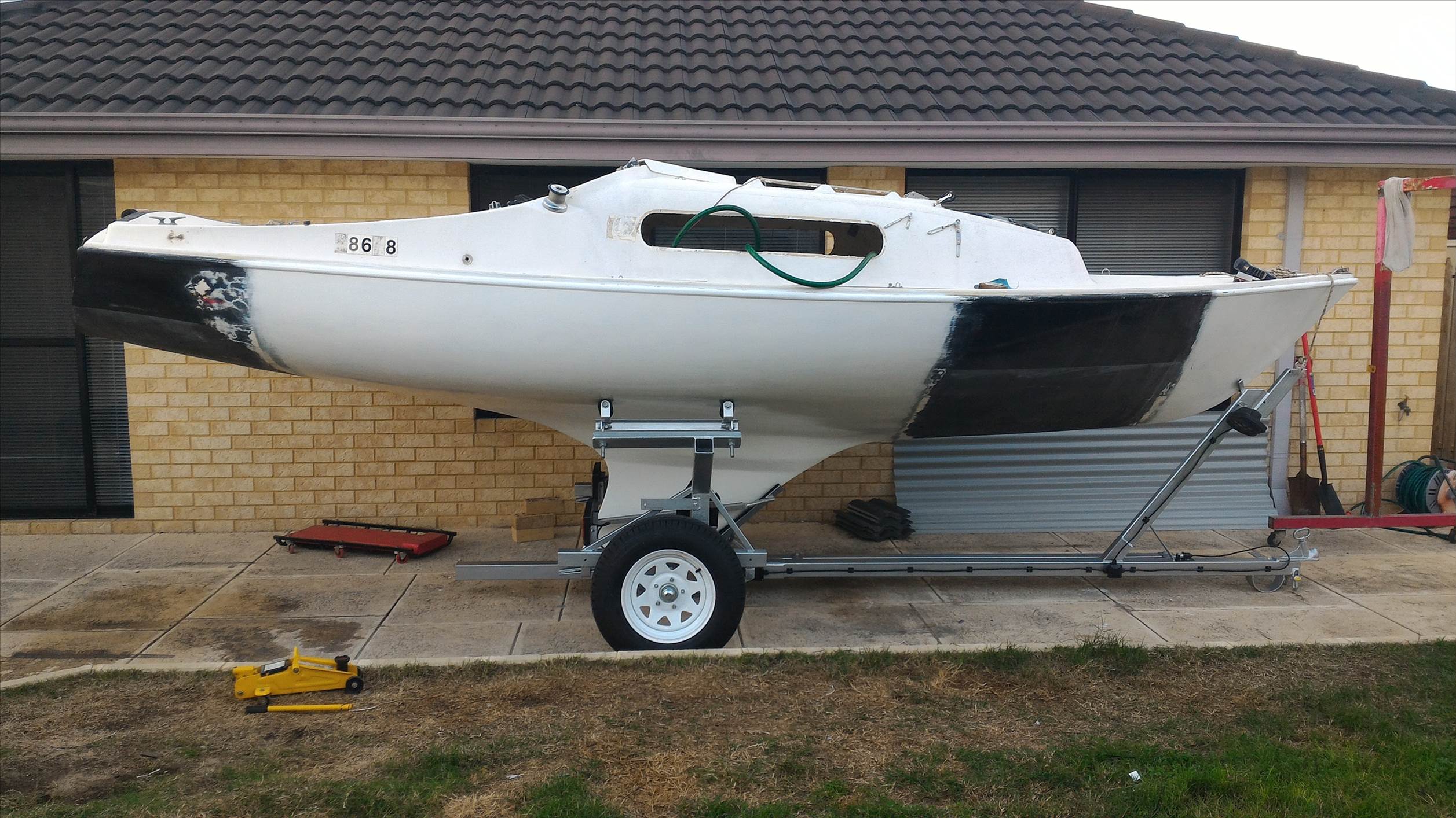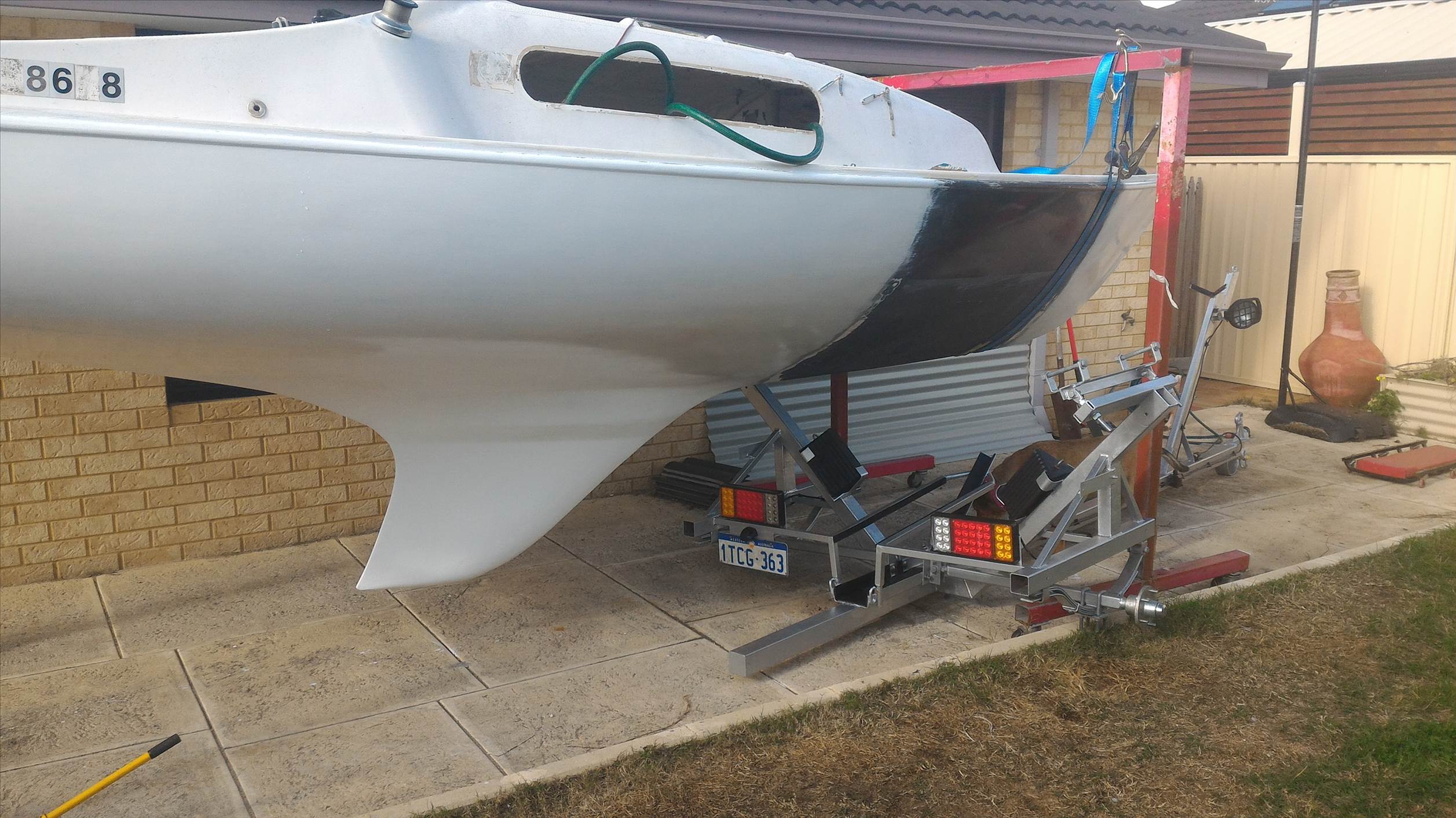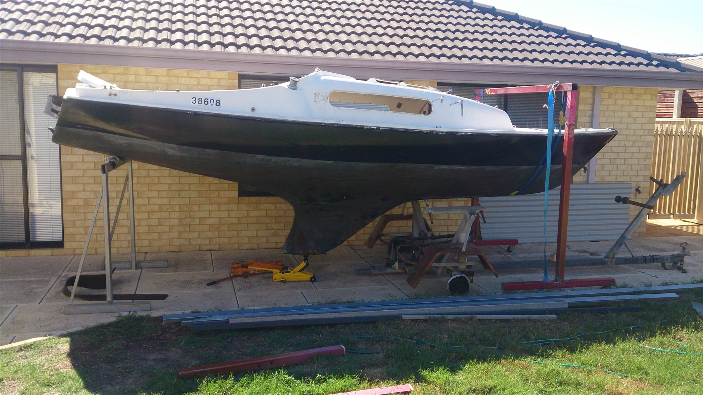 First job was removing the Yacht from the trailer. i did this bu jacking the trailer, then supporting the hull and lowering the trailer.