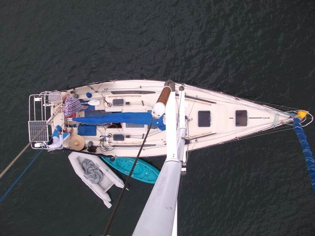 . I suppose it also helps if you know how to tie knots. Because I can put the bottom attachment point in multiple locations I am able to inspect the standing rigging at the tips of my spreader as well.