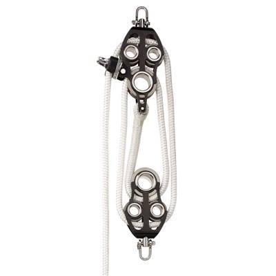 Just borrow from the mainsail boom block and tackle / removing or bypassing becket/,