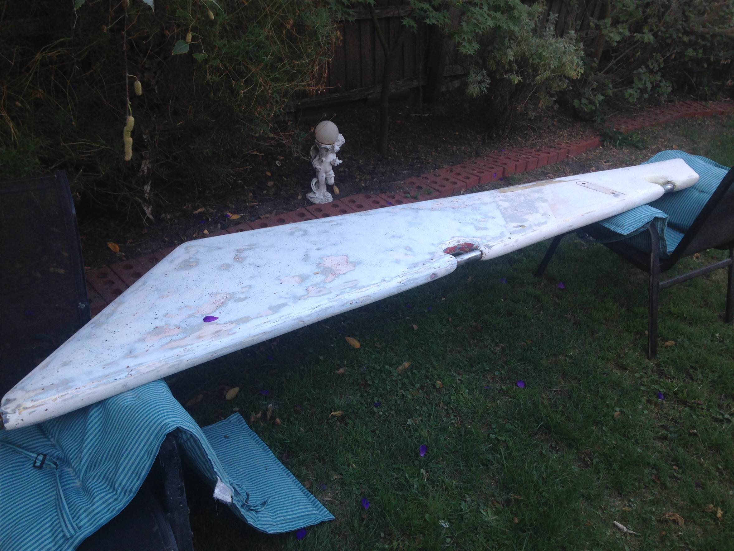 Started sanding back the other side of the Rudder today they were thousand of small moon craters all over it so I removed most of the gel coat and laid down some fiberglass cloth and epoxied that side .