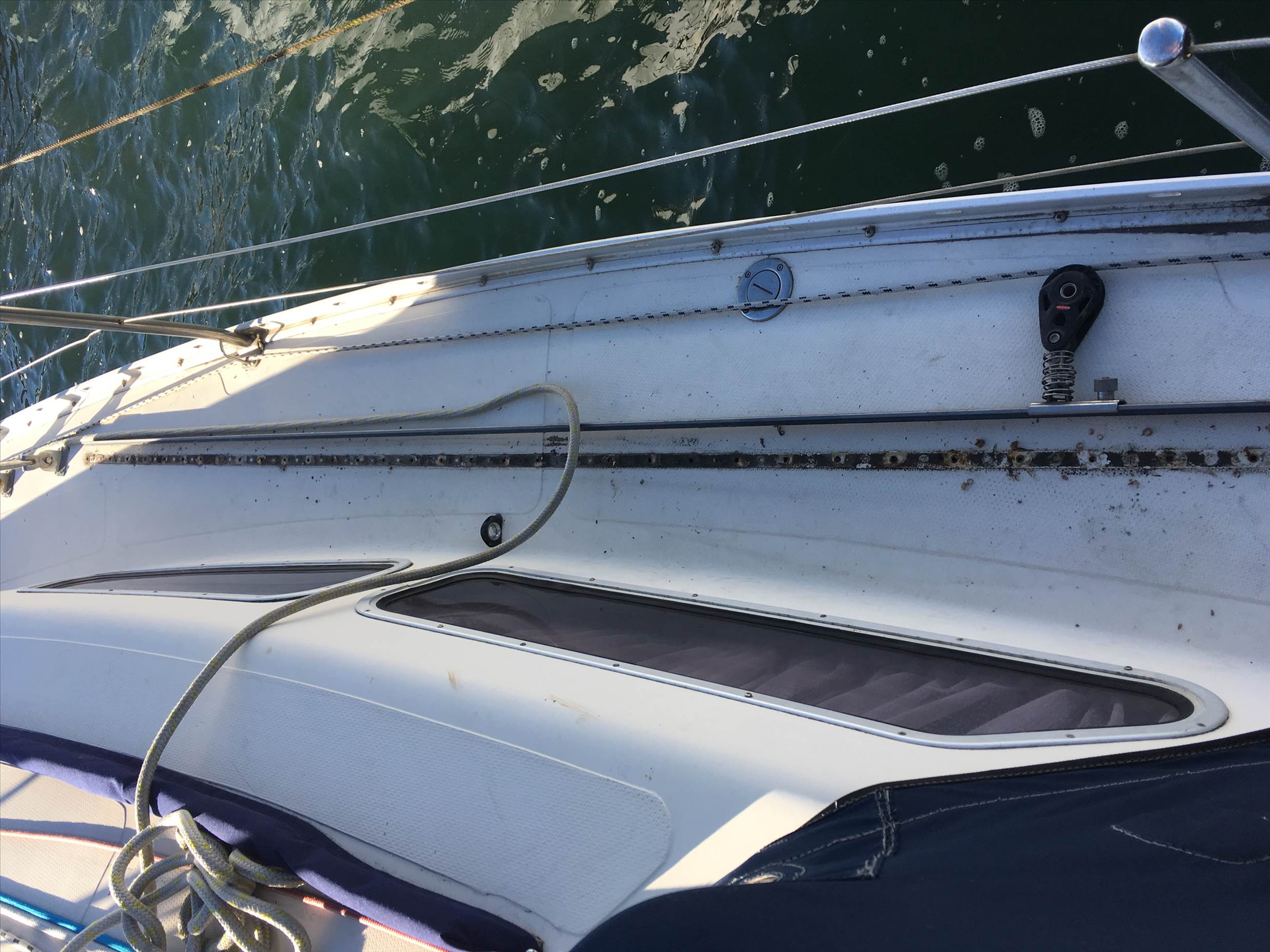 removed the deck section of my chain plates and will clean them and replace the through bolts and nuts and reseal them . While there off Ill prep and paint around the brackets