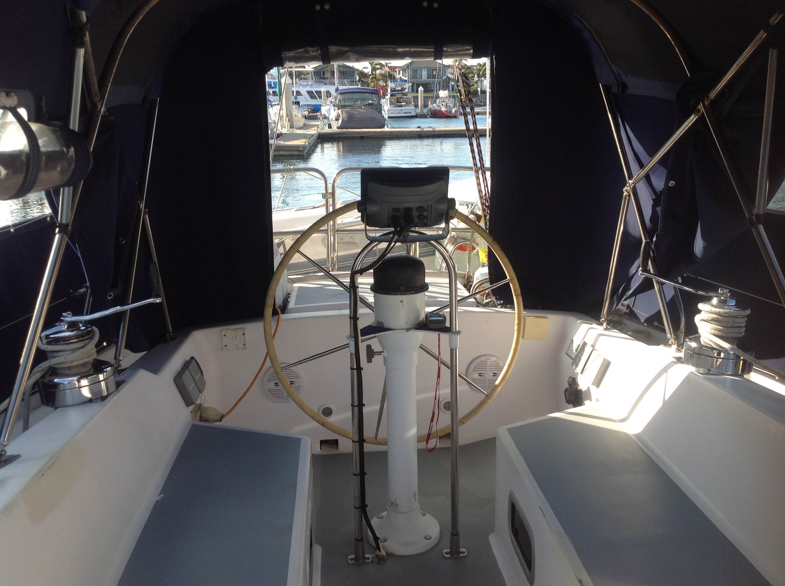 I look forwards , out the sides and out the back I tuck the full sides up on nice days and some times coming into Marina berthing. It's fine in clear deep local waters. What do you exactly want?