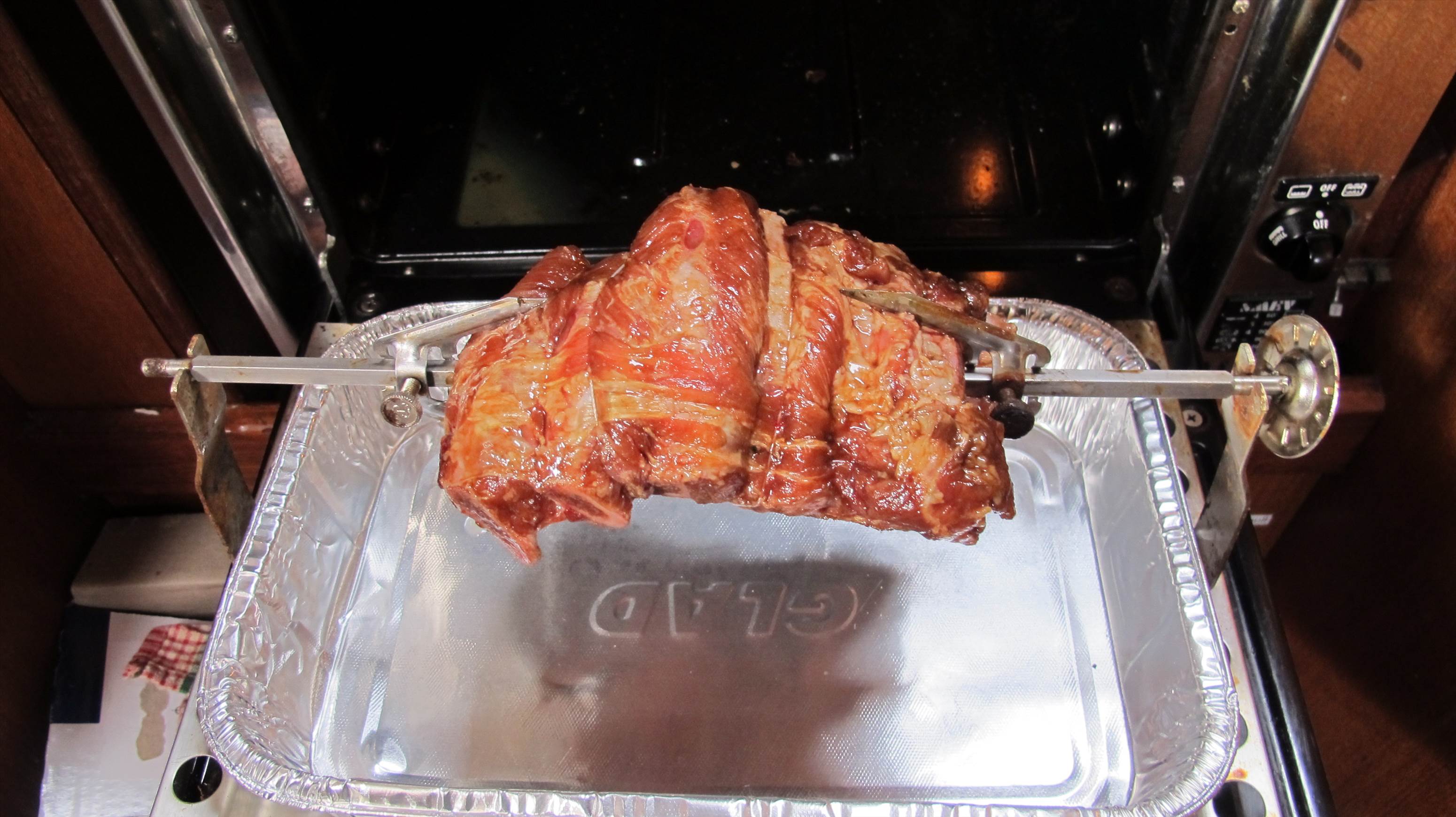 I always wondered what the electric motor did in my smev oven......final found the rusty bits and pieces today and cleaned them up and threw a pork rack on the spit! Yum