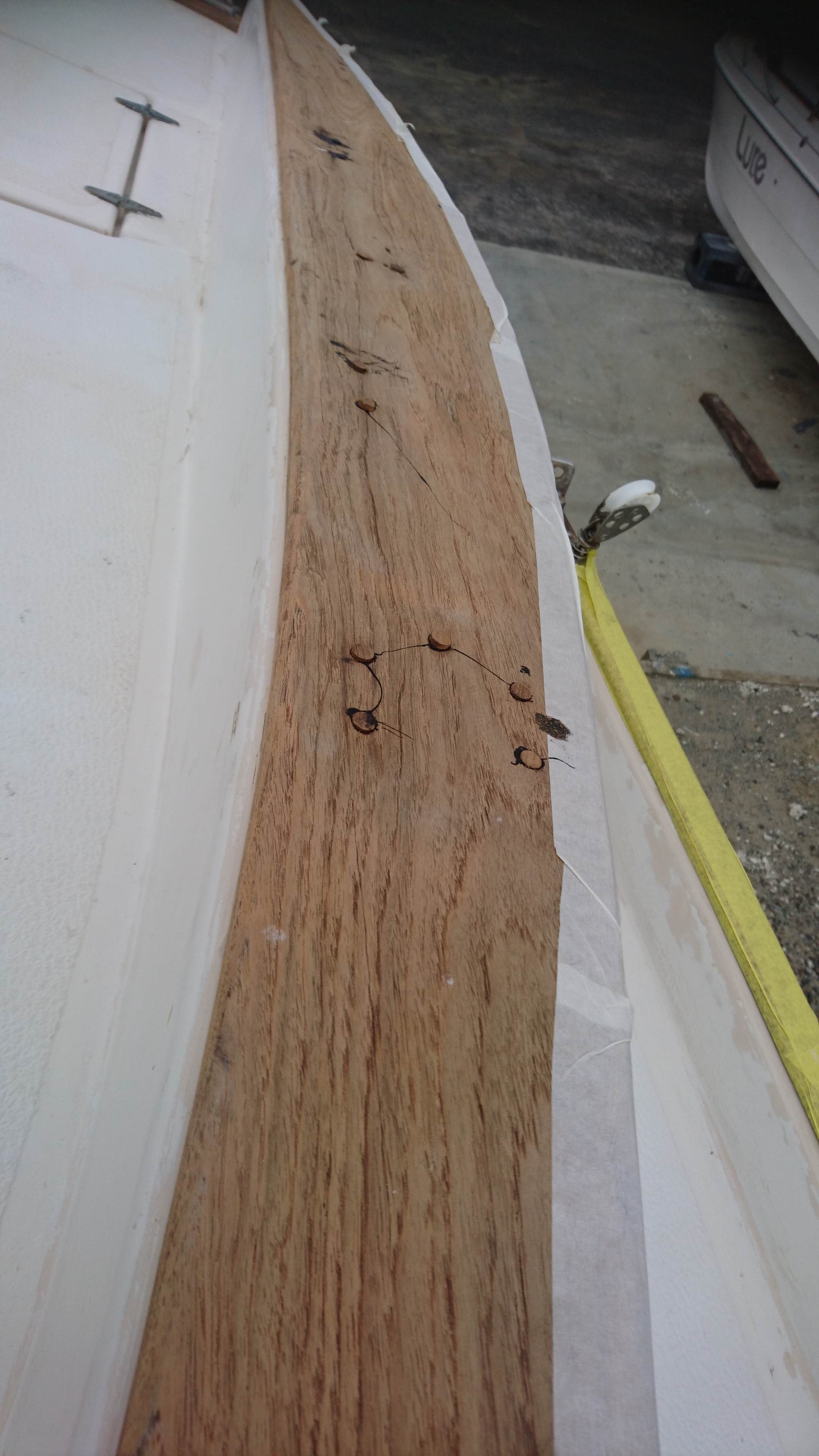 Did some deck sanding and then as Im moving winches further aft, so drill and fitted some teak plugs before any more sanding