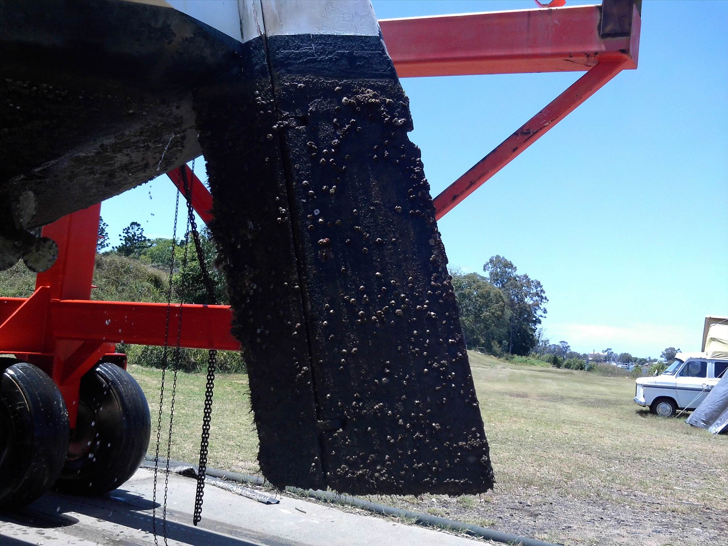 Not bad after being in the water for 3 years. The anti foul is Altec No. 5
