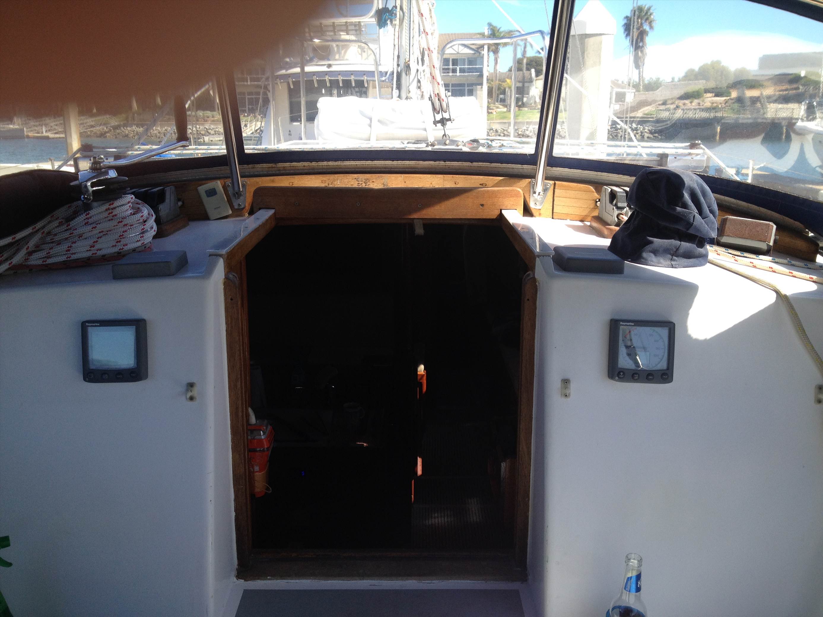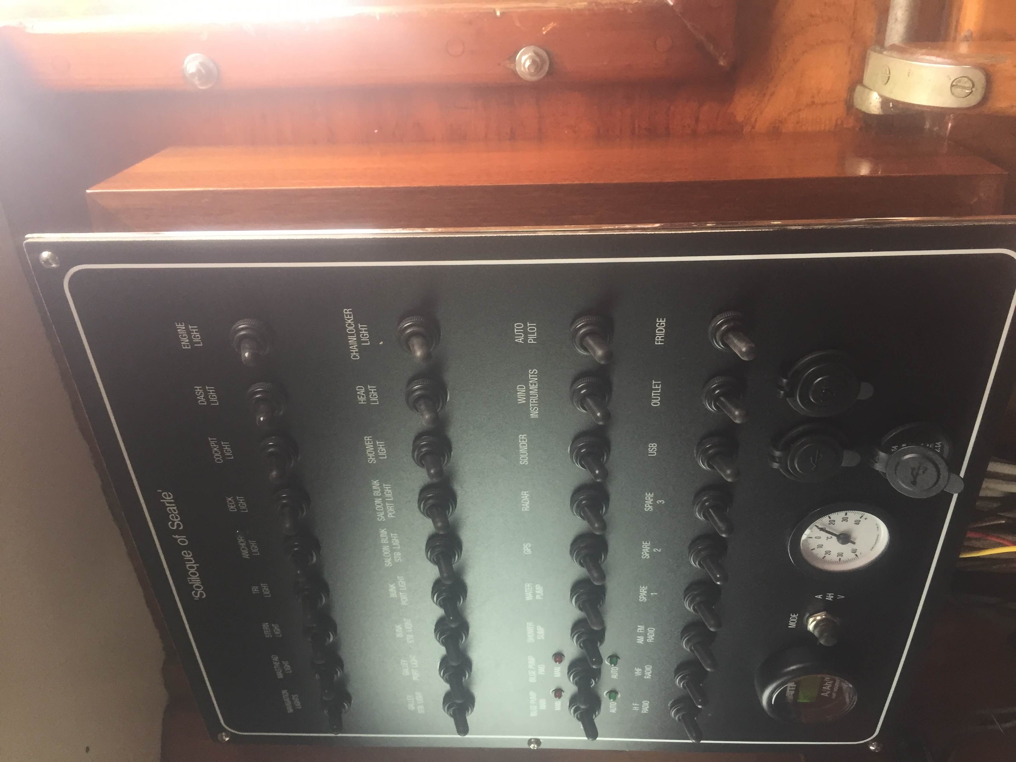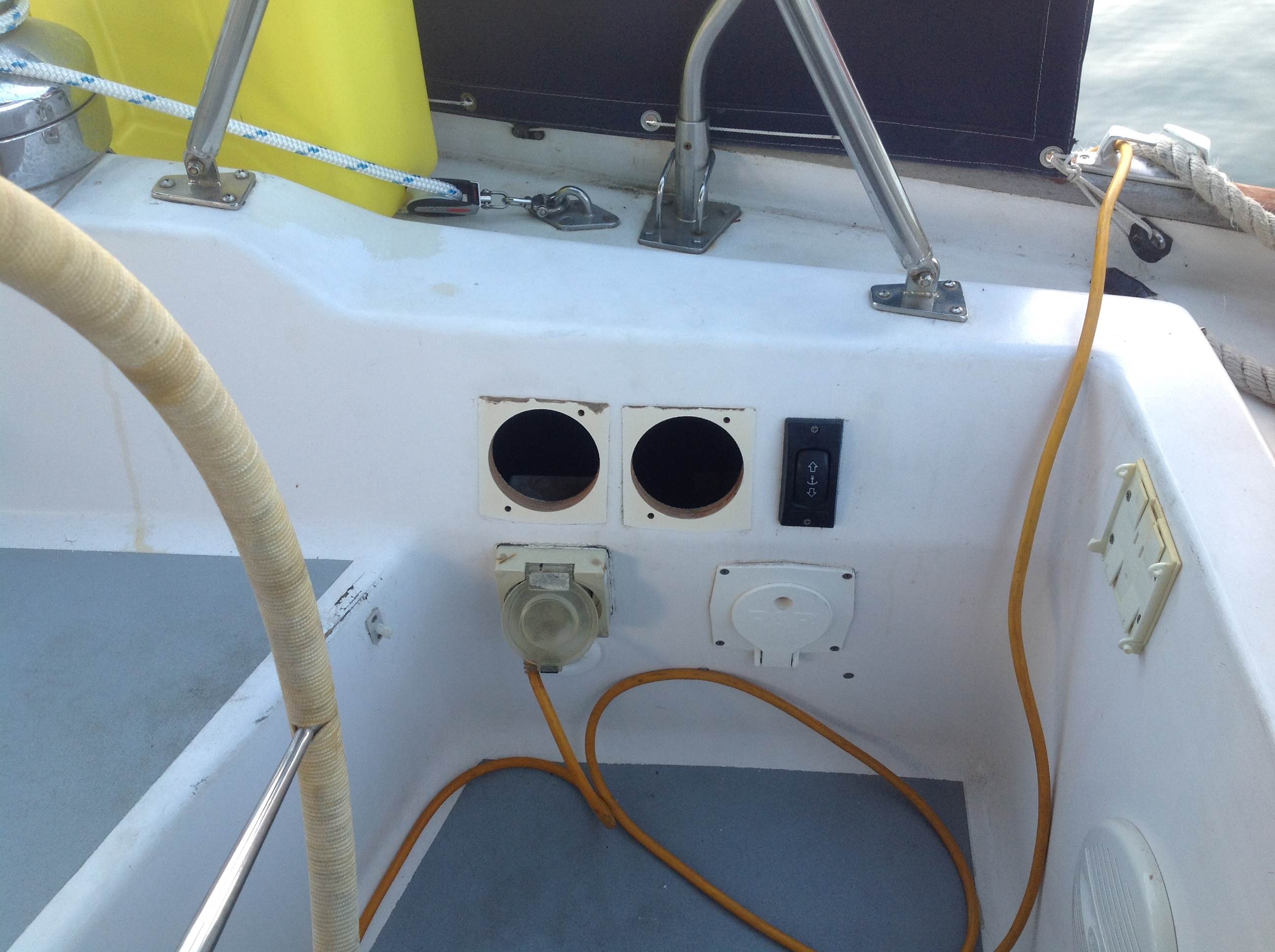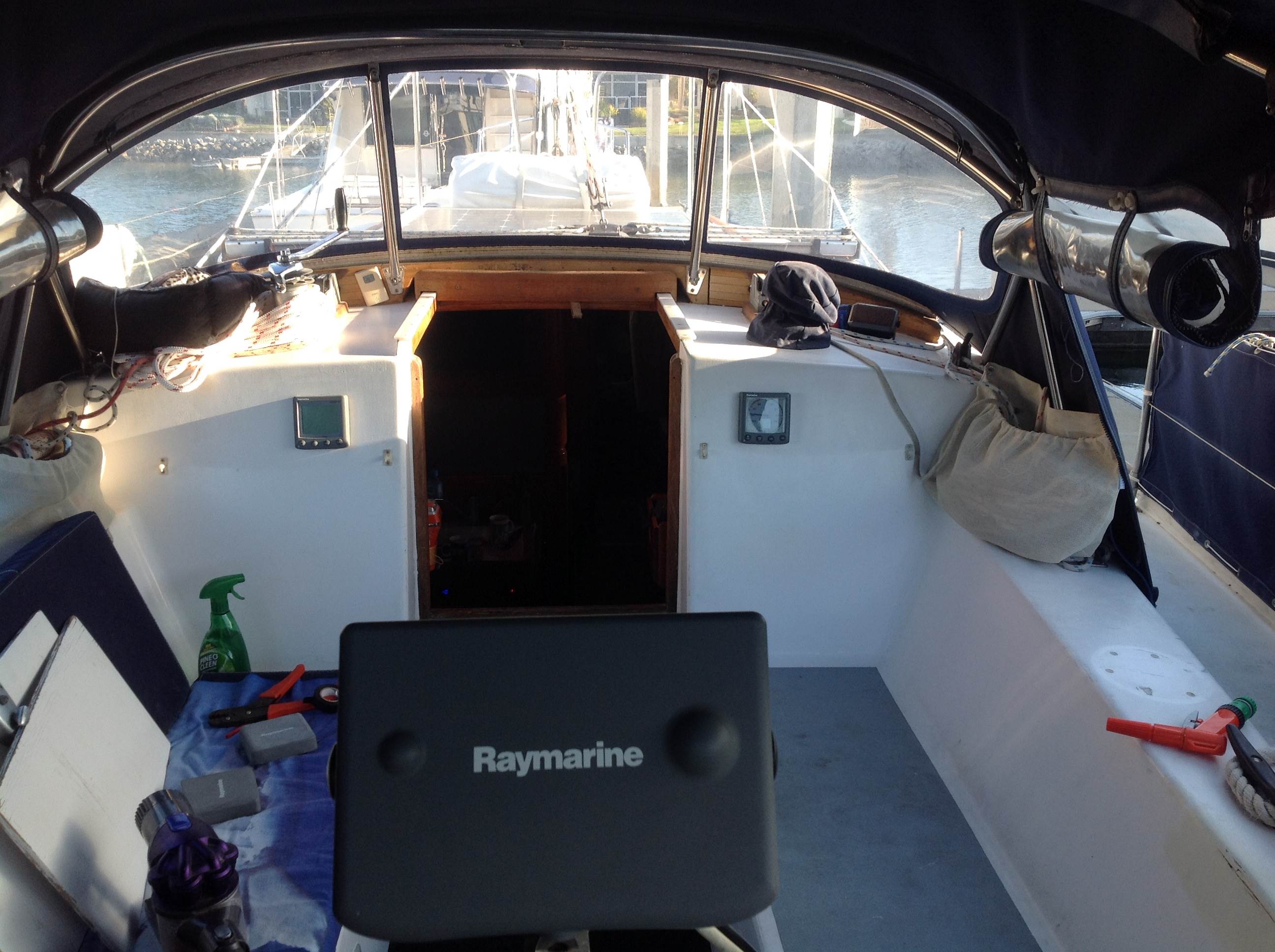 Nearly powered up! Wind on Starboard and SOG and depth on Port . The autopilot and Tri dater can stay on the port side down in the cockpit! Maybe take Tri data down to nav station eventually! Time to cook some lamb cutlets now!