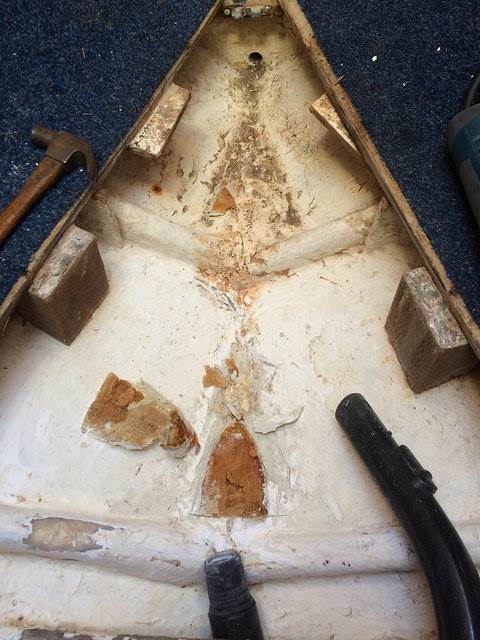 A void half way removed in the forward bilge. I had just cut-off the cap and you can see the foam beneath.