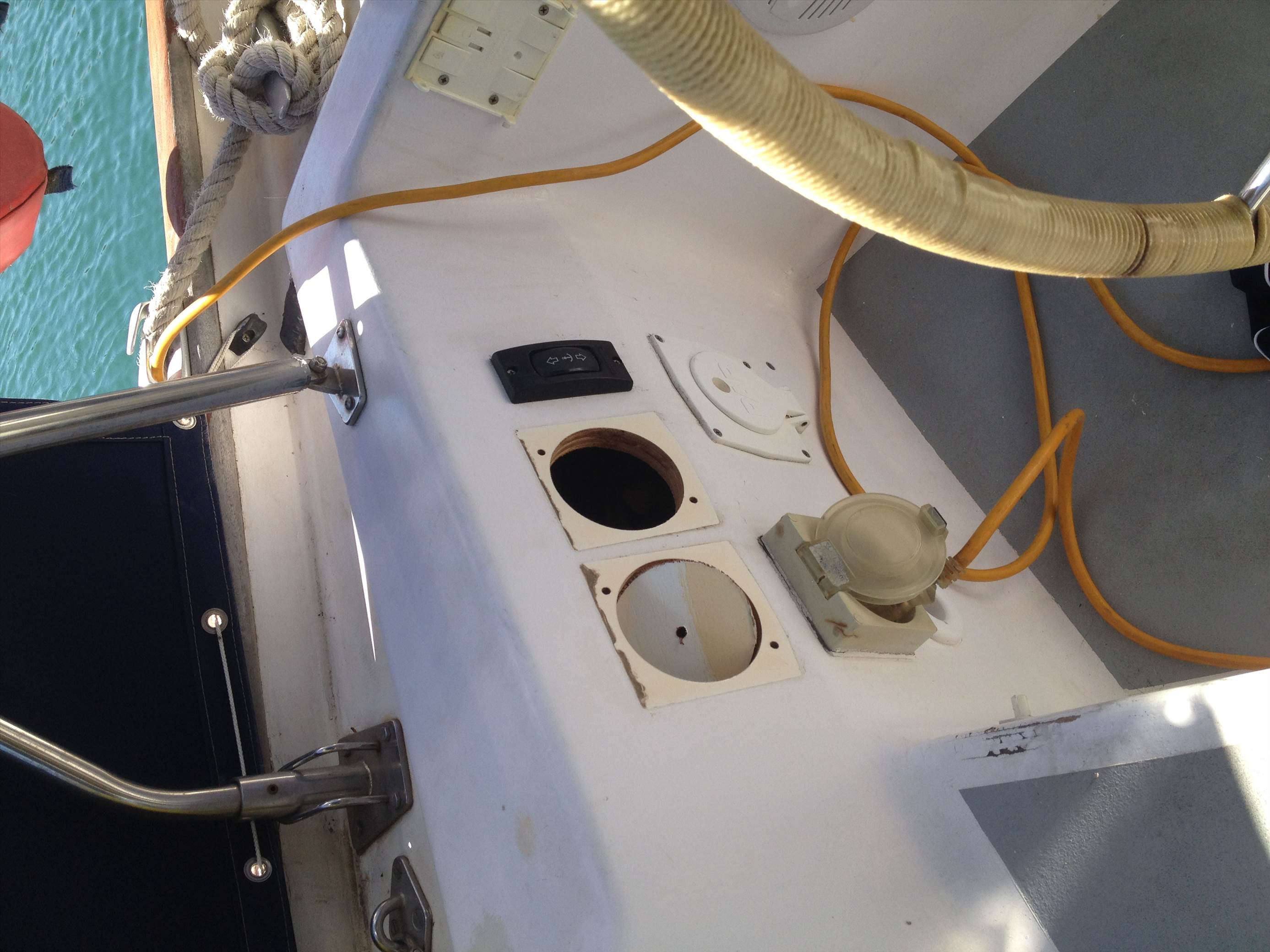 I fitted hull throughs into the floor to past my hose and cables and loom up to the pedestal .