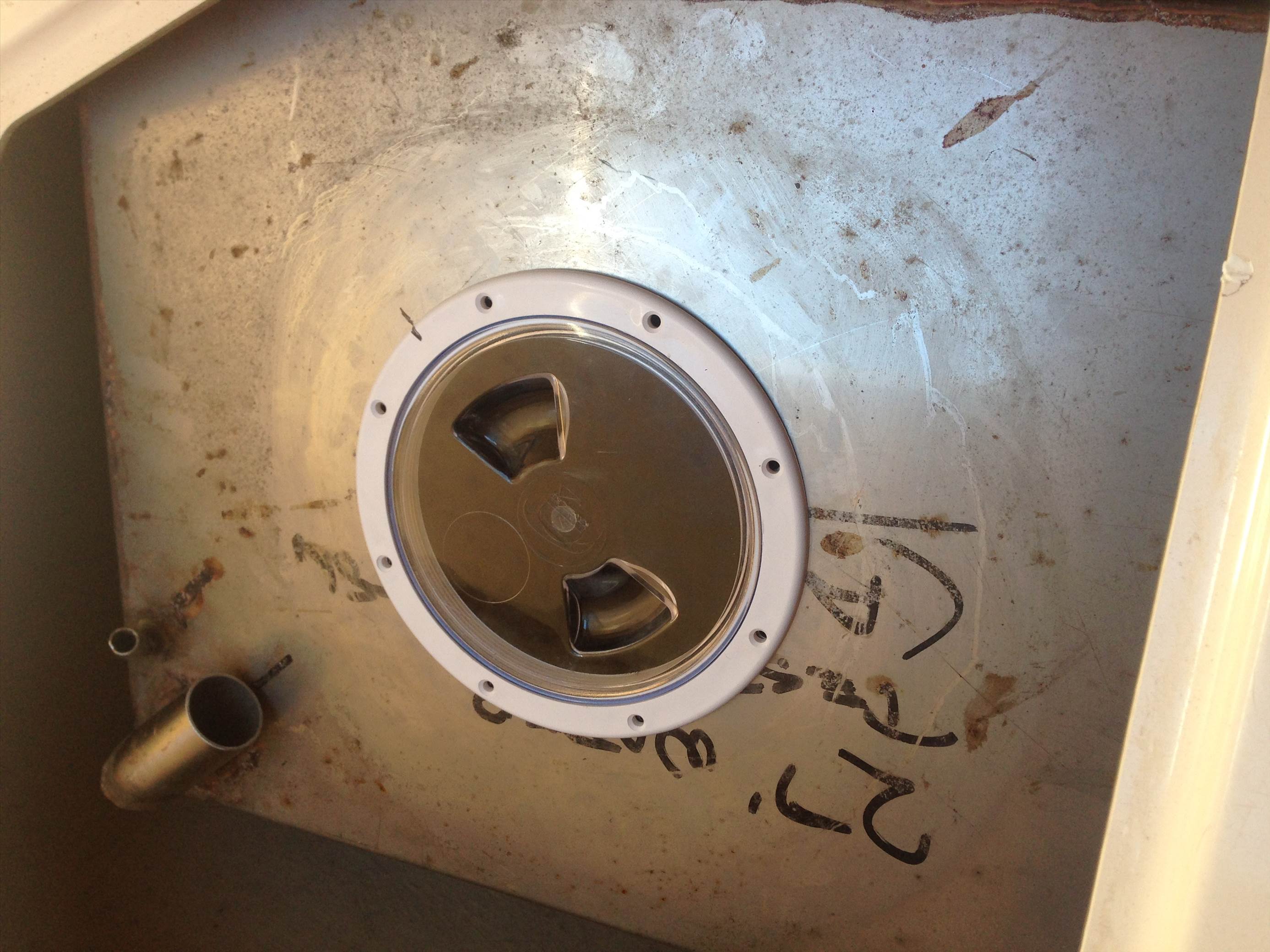 Finally cut a big enough hole in my stainless water tank to fit the access hatch.