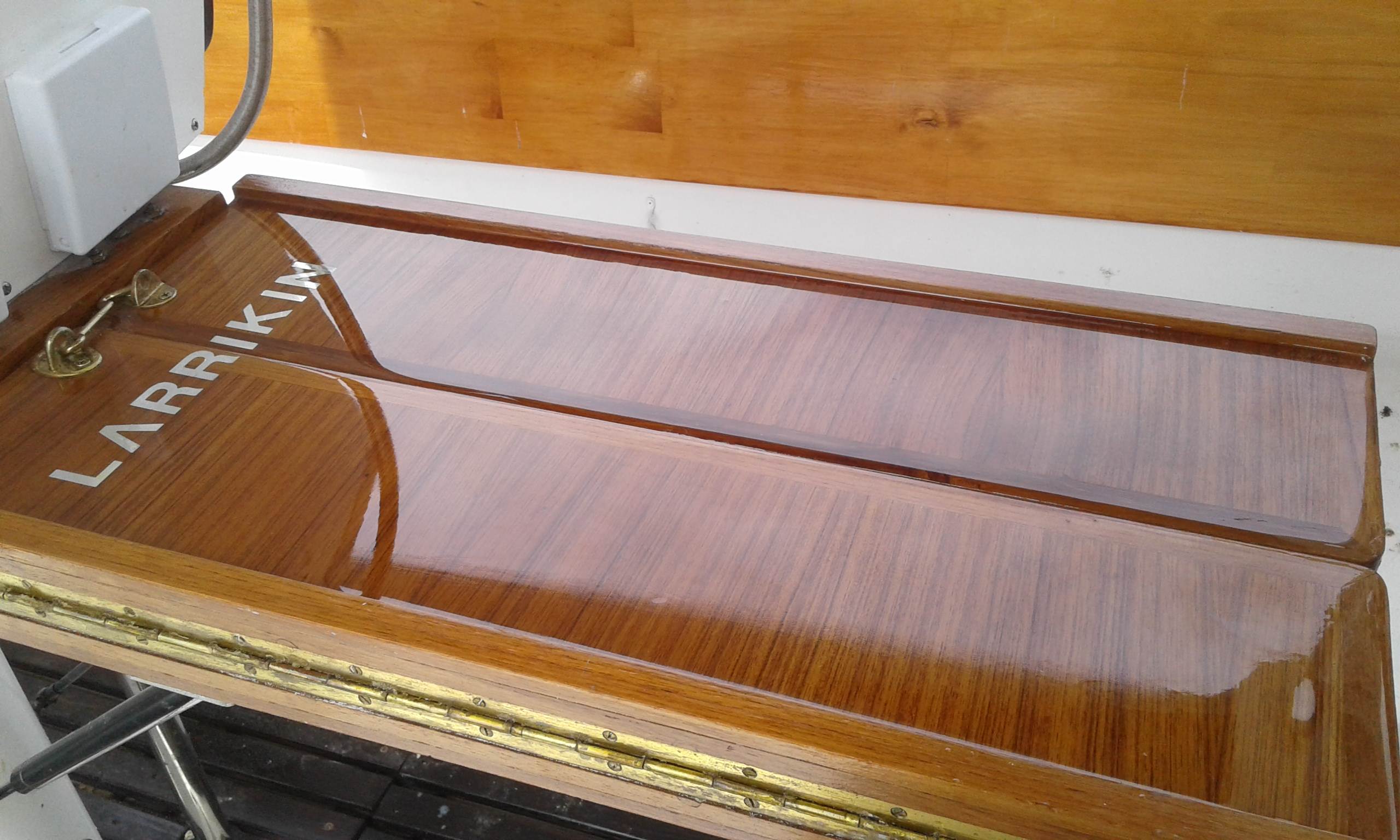 I was in a hurry to get it back on the boat for xmas & rubbed back the varnish too early & stuffed it up. have to do heaps more sanding after xmas now!!