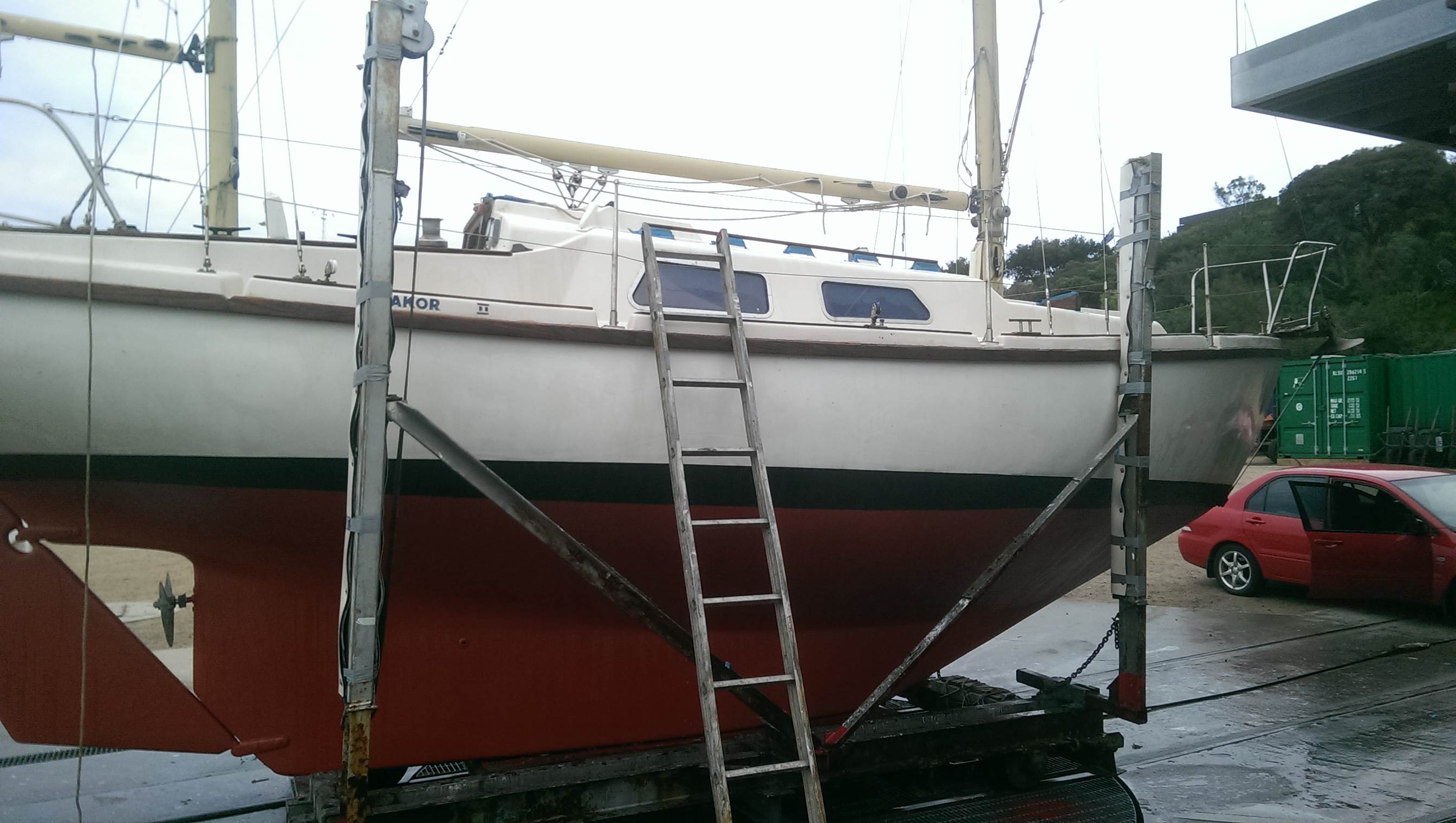 The local lift out crane will be removed by the end of April and it will be 12 months before the new one will be operating so thought Id freshen it up and also have a look one rudder bearing needs a shim or two Ill fix that before shes drop back in and Ill be throwing some sikkens around after anti fouling the bottom