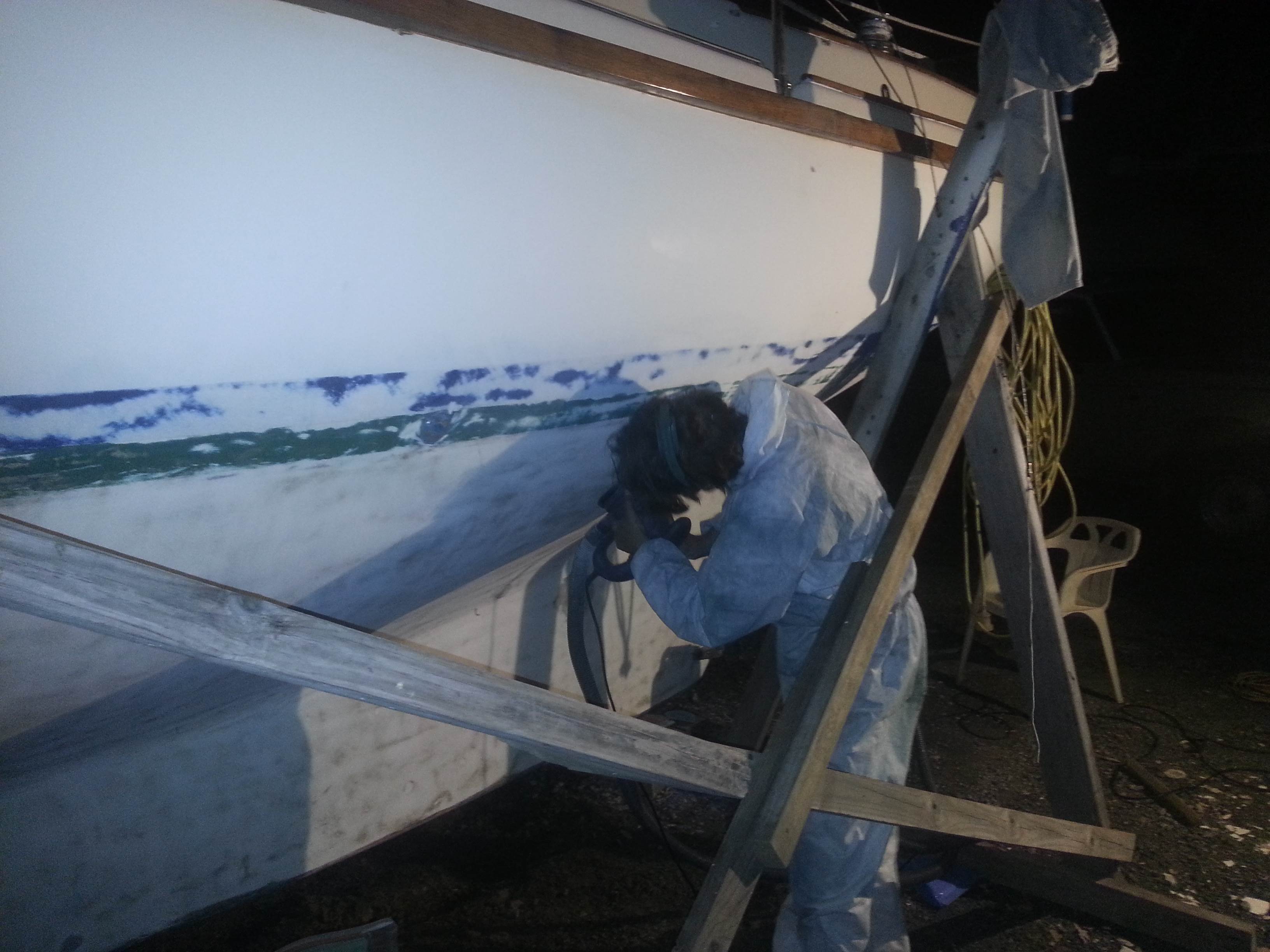 glad wrapped boat . it was for the rain but its also good at making sure no bugs or dust gets onto the paint. when I paint above the waterline next year I will do the same but extend it out to give more working room