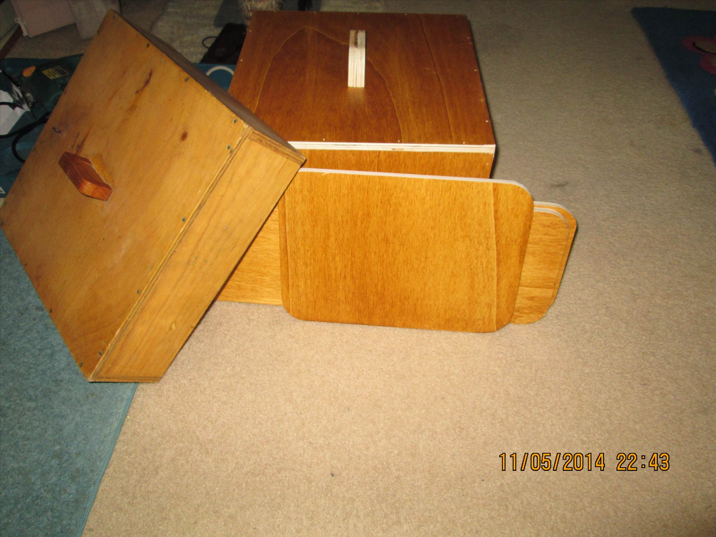 Wood work weekend Made replicated the battery box for the starboard side . Made two panels for fixxing my electrical panels and solar charger to also made a panel for the cockpit throttle and forward reverse control this may be larger than I need as I didnt have the measurements at home
