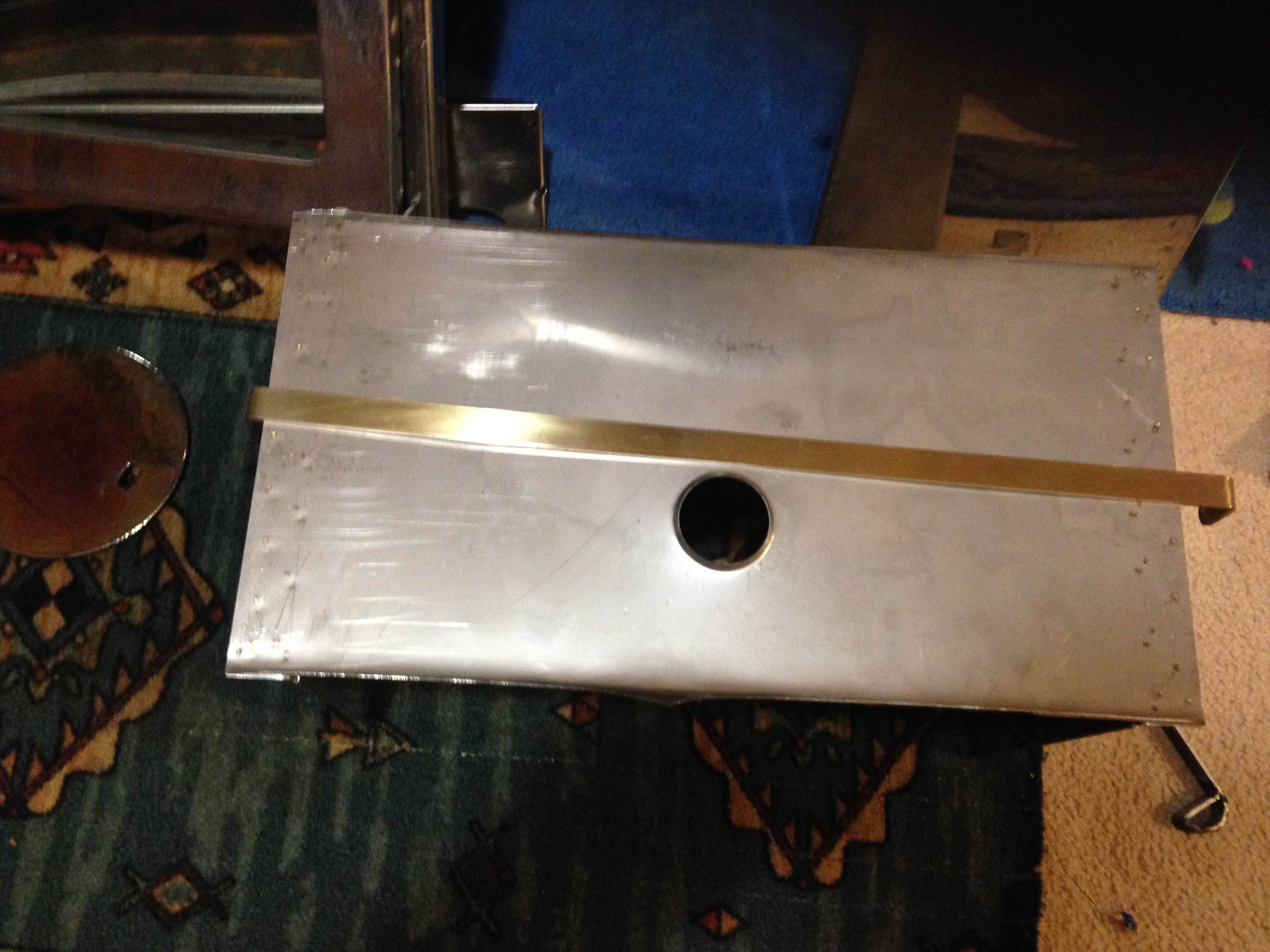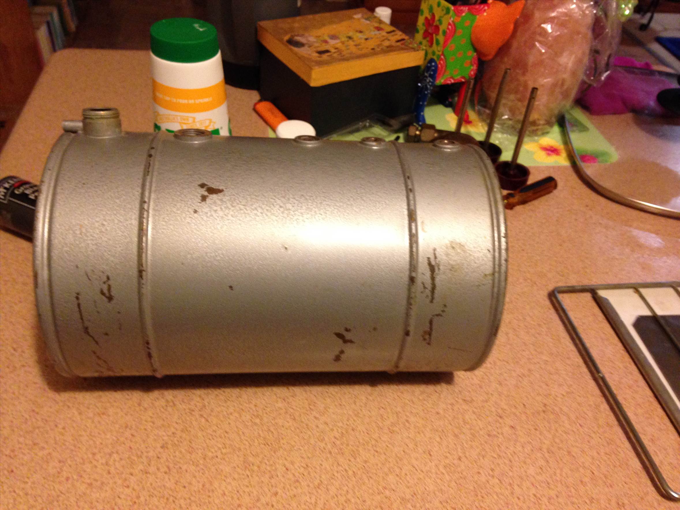 The Kero tank is in the cleaning tank stripping off the paint . I will pull it apart later after the cabinet is made and really clean and polish it