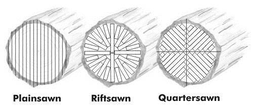 The way a piece of wood is cut out of the log is very important, good wood is quarter sawn. Most of the timber you buy these days is flat sawn as there is no waste and faster throughput of each log, therefore more profit for the miller.