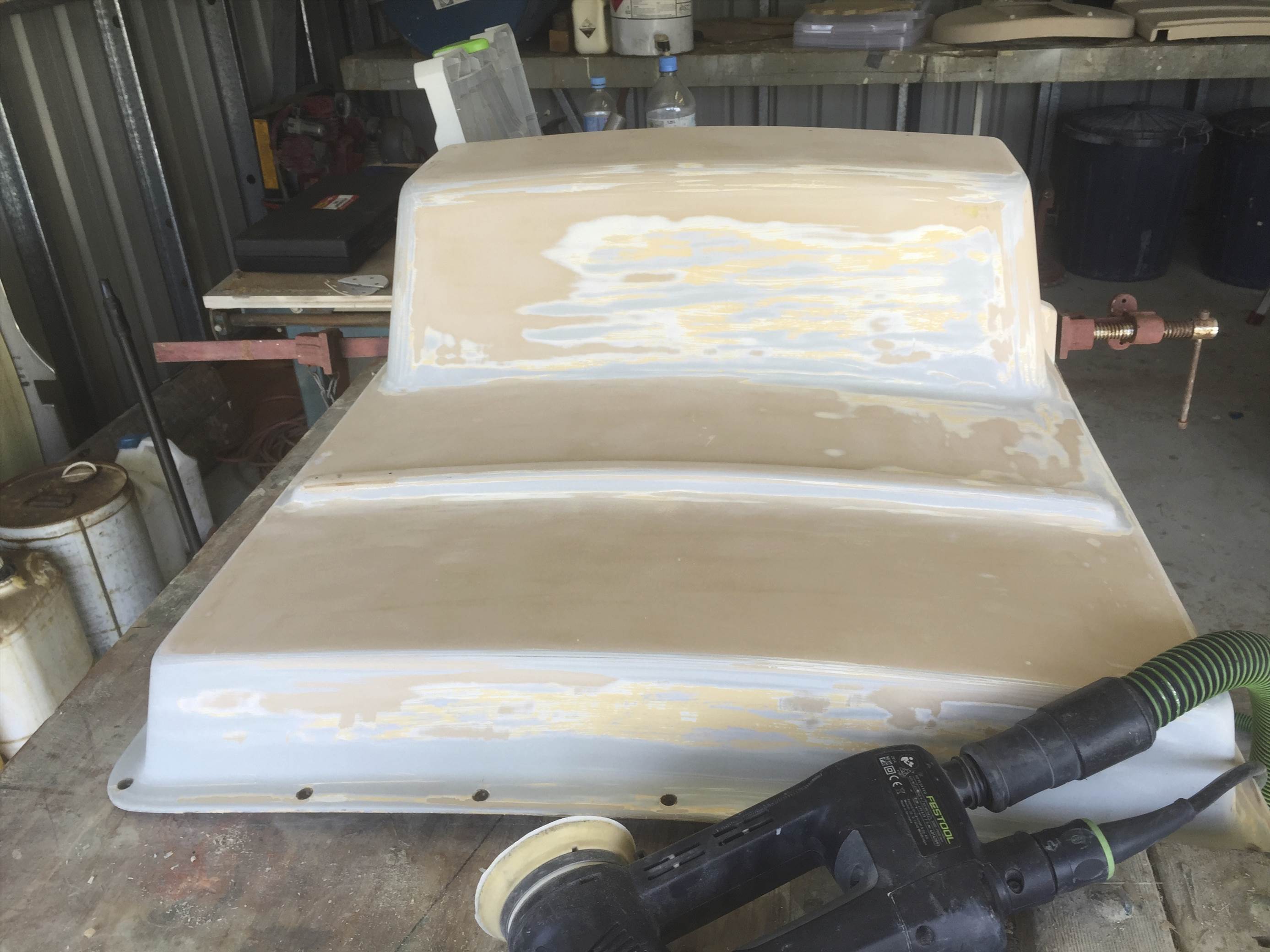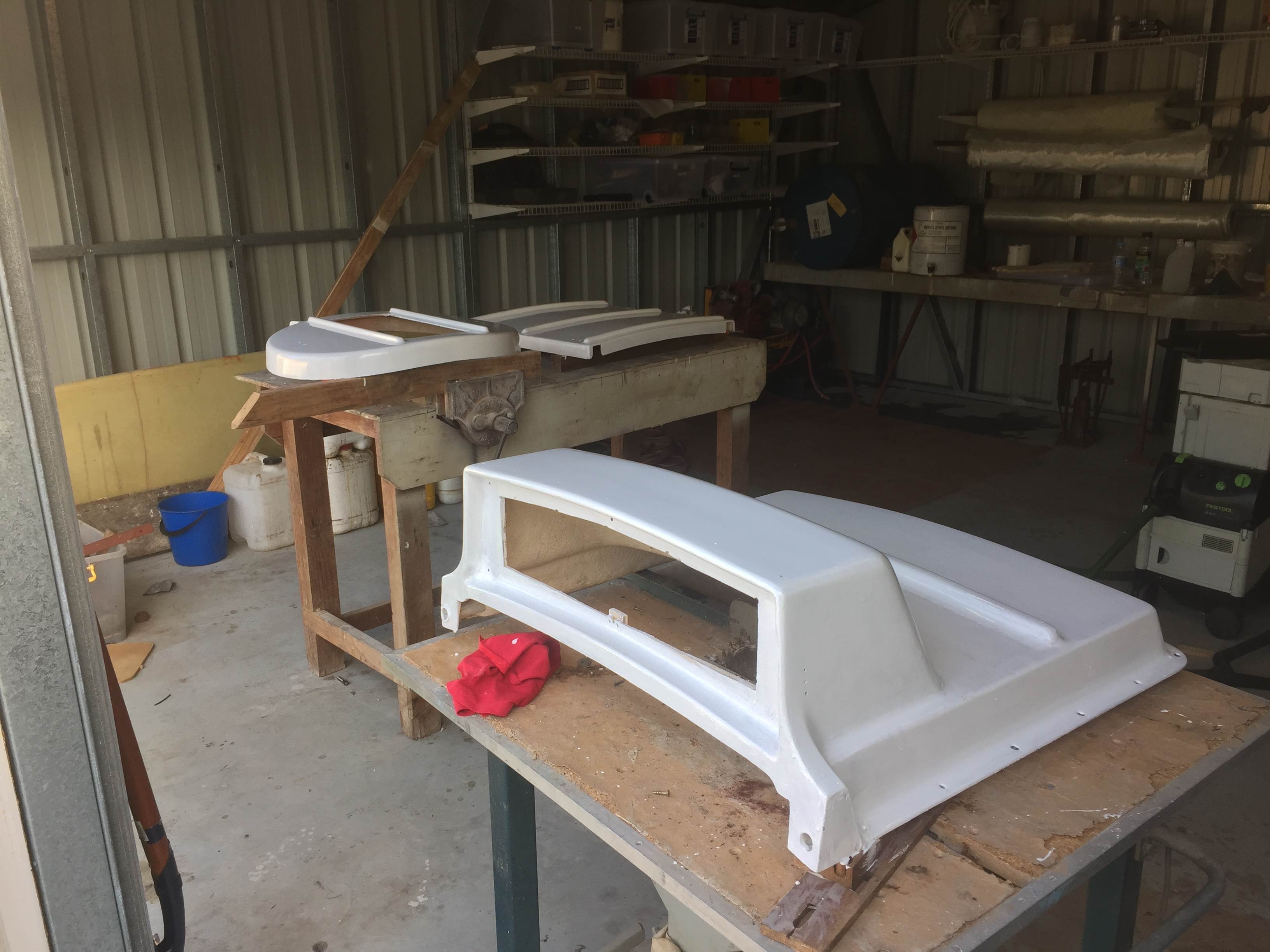 This is the rear starboard toilet/technical area bulkhead showing the doorway, this is at the infusion process showing the foam. The long piece in the foreground extends back under the cockpit so to speak.