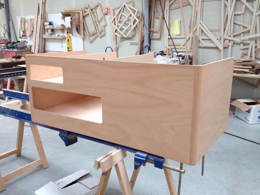 I just assumed it is ply, I never thought to ask. I couldn't see a steam press when I went through the factory, but how else could they do it? Here is a picture of the galley sink, does this look like ply??