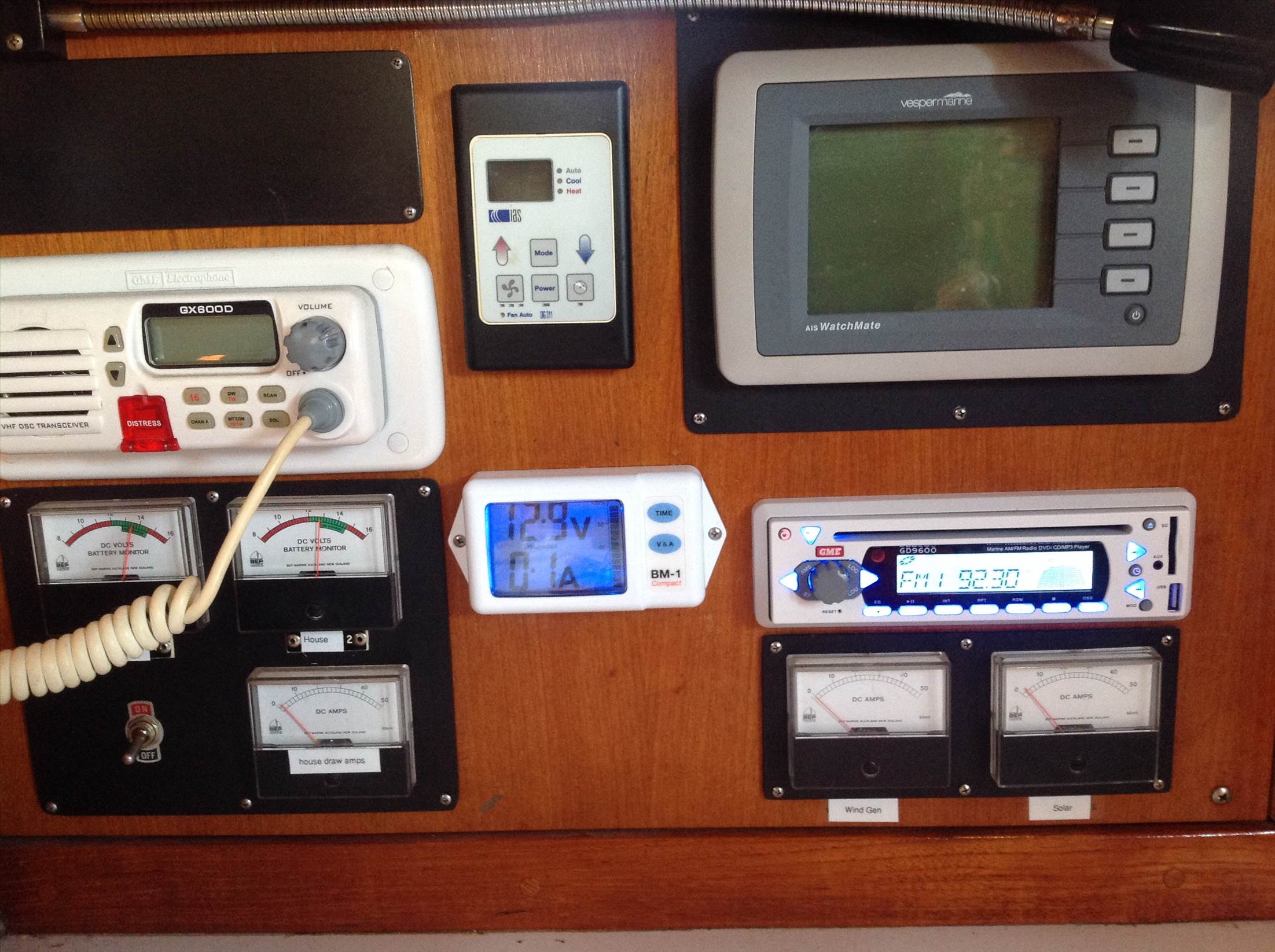 Directly below the AC charger is the engine battery which you can just see. The 4 x 100A house batteries are all forrard of this in the engine compartment, they sit just in front of the engine under the base of the stairs, really neat and very accessible. I'll try and get a photo of the engine bay today.