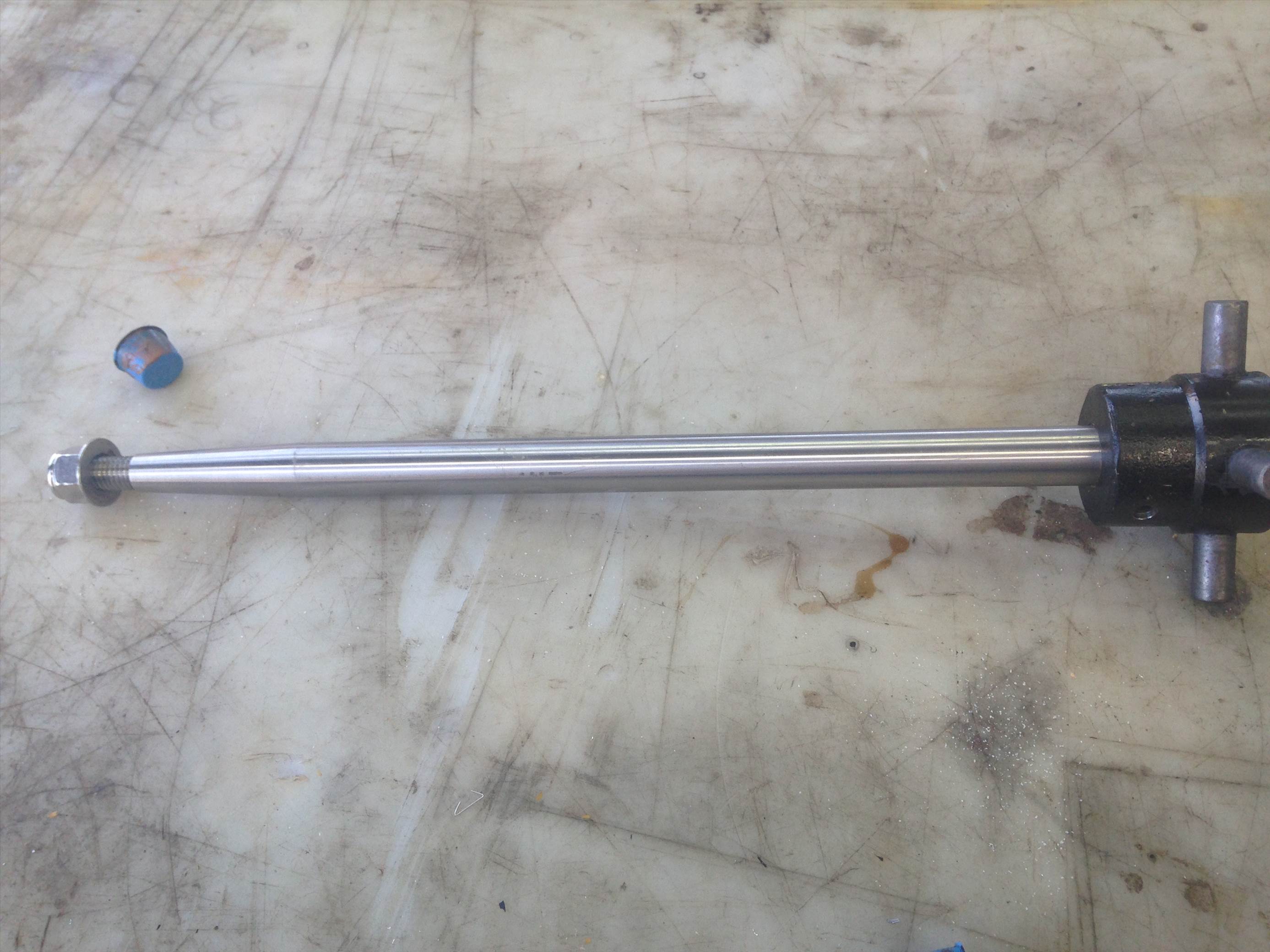 Drill the coupling retainer hole though the prop shaft this morning before work