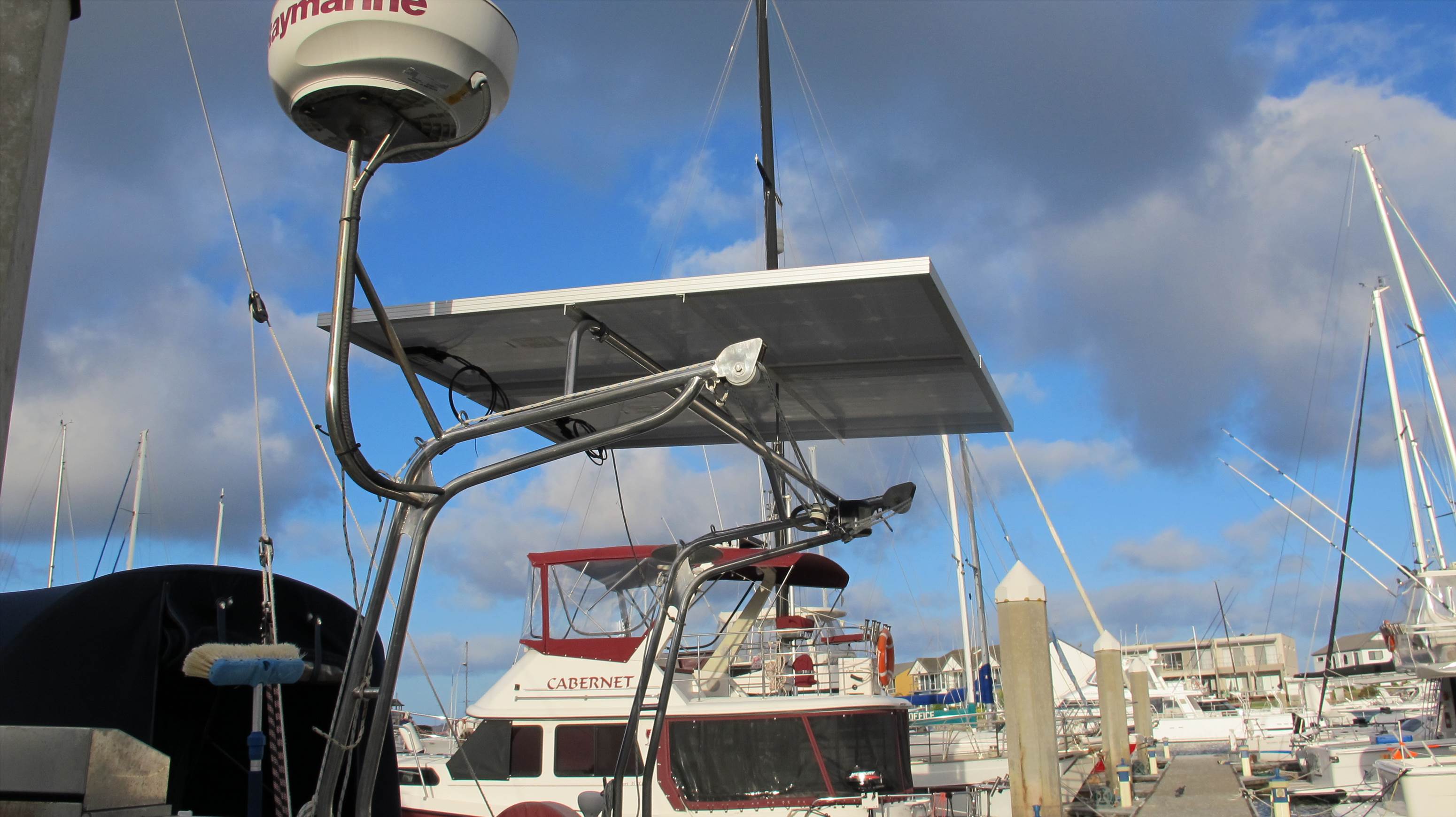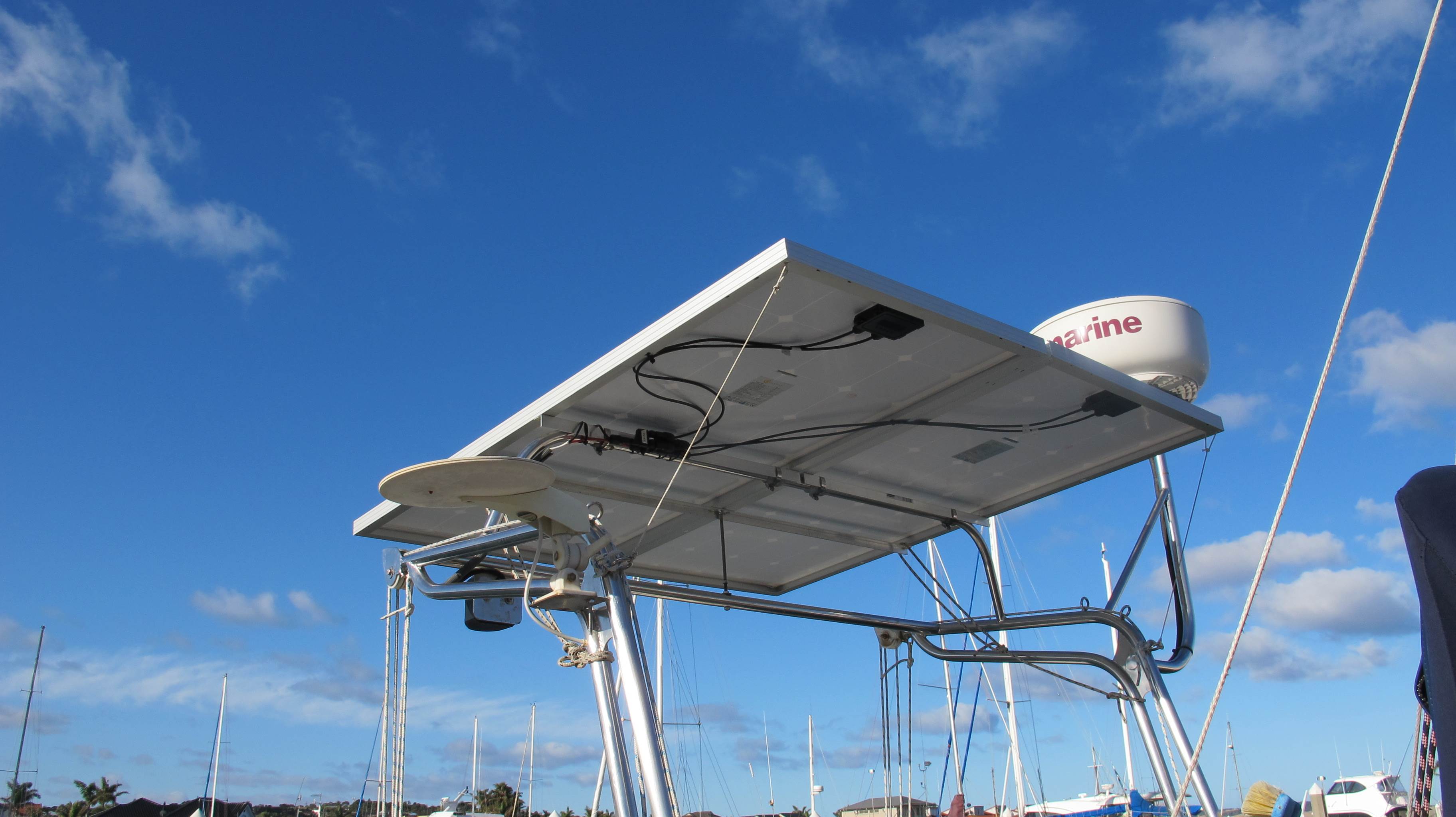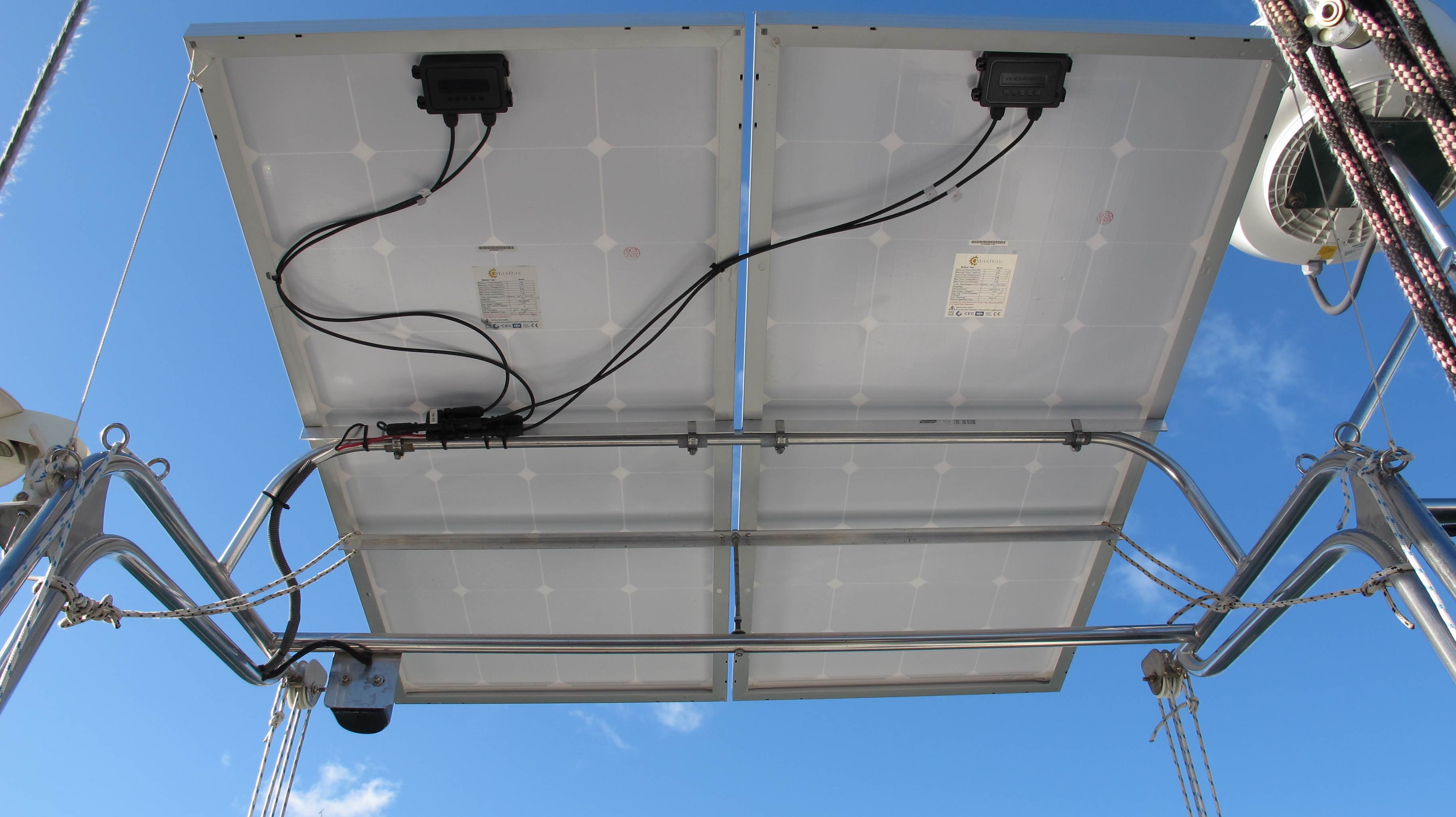 280watts of solar complete! Next week wind gen and VSR battery switch! Happy sailing weekend warriors.