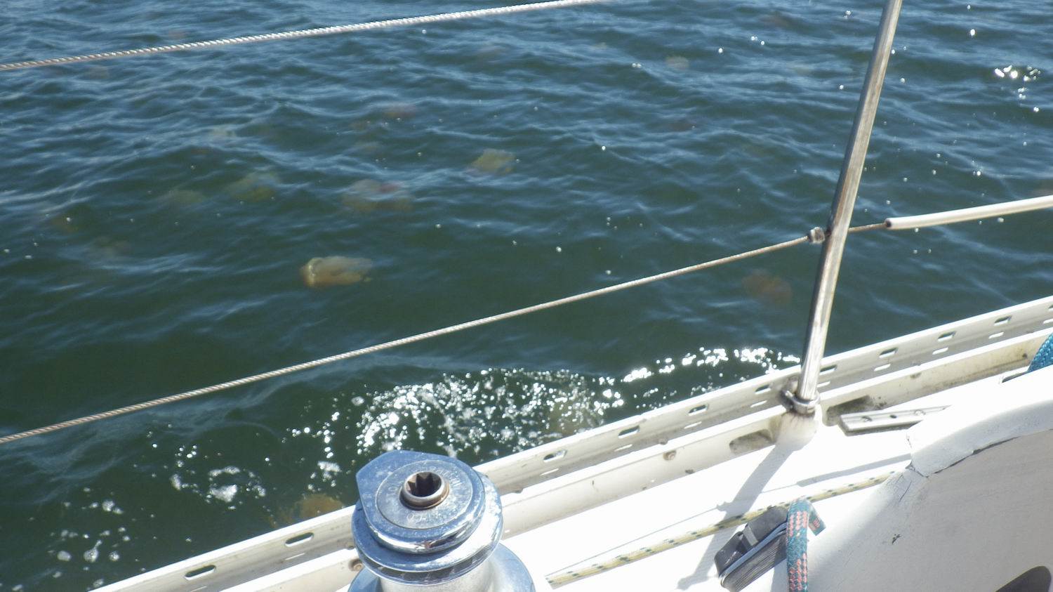 No. I was more worried for my windvane oar but that was not a problem. We have these every year when they breed but not in these numbers usually. High tide they disappear so you can still work under the boat or swim.