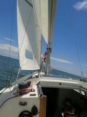 First sail alone on my little Folkboat. Bliss!! I am addicted to singlehanding!!