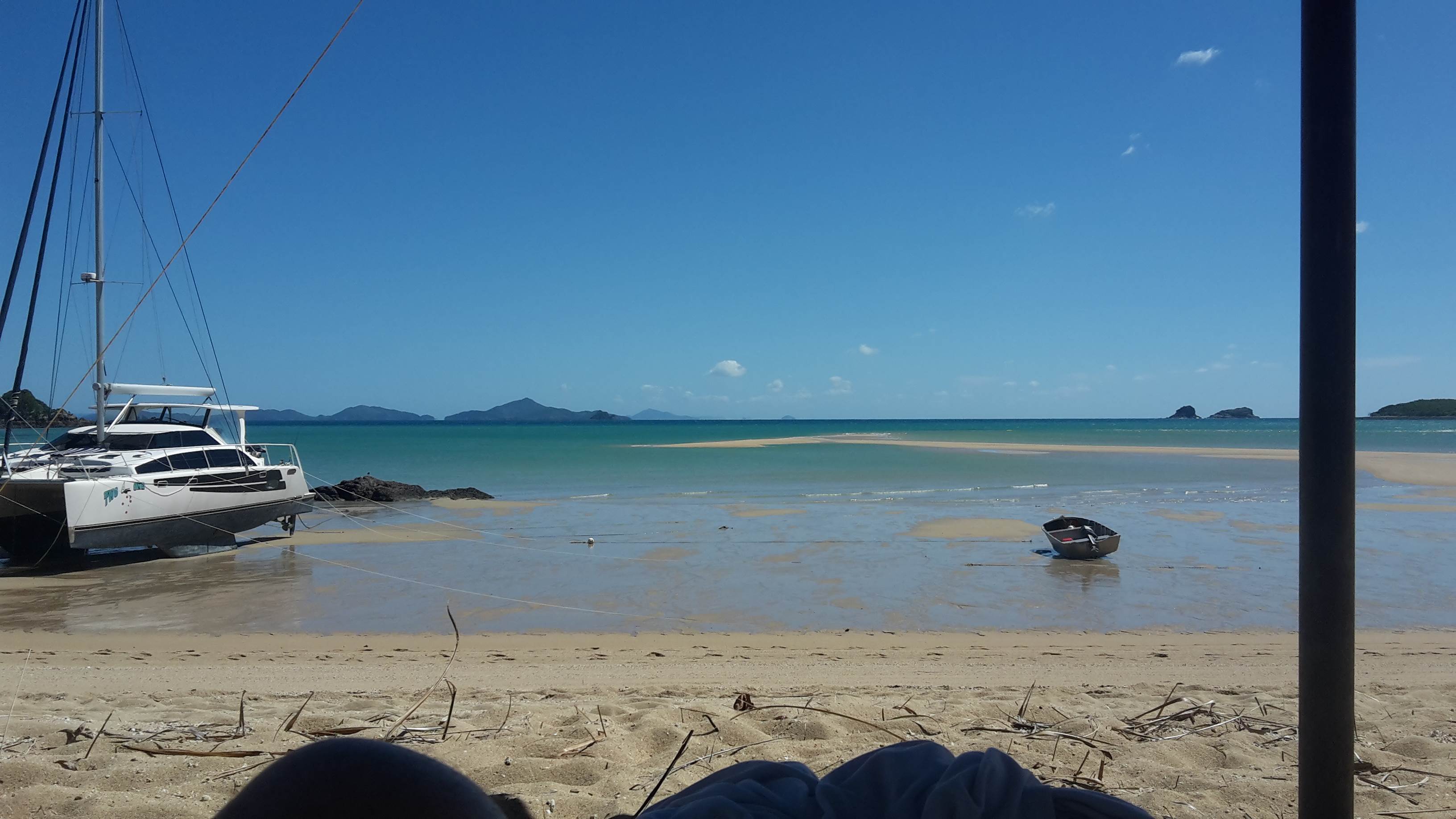 Currently enjoying a glorious sunset off Orchid Beach , drinks in hand, cheese and salami platter ....can we just stay out here??