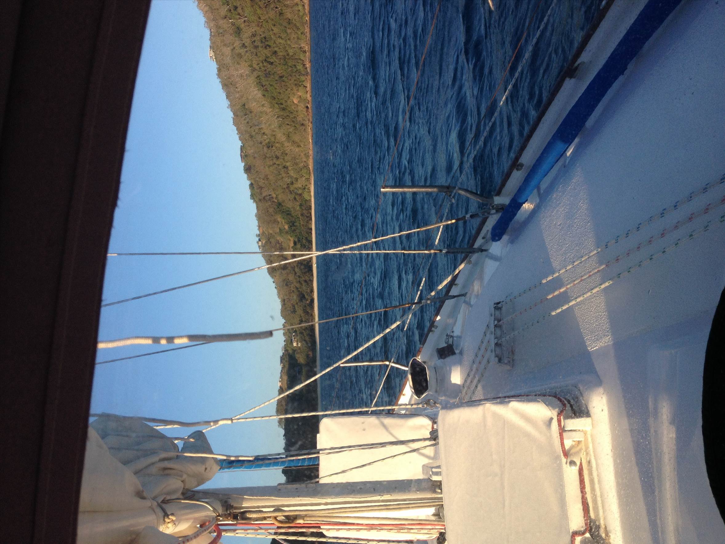Headed up the Harbour, out the Heads where I passed a seal lazing in the water off South Head, locked the wheel and enjoyed a flat ocean and steady breeze. Passed closer to the seal on the way in, then passed P&O cruise ship sailed by before I battled with my furler trying to get the big genoa down. It won the first three rounds but I eventually dropped it in the fourth. Will have to get one of those Harken ratchet fairleads and some non-stretch furling line and see if that helps. Sailed up to the mooring. Went for a quick dip and lay on the deck cooling off. Saw 6.6 kt top speed (gps on ebb tide in the Harbour) which surprised me a bit.