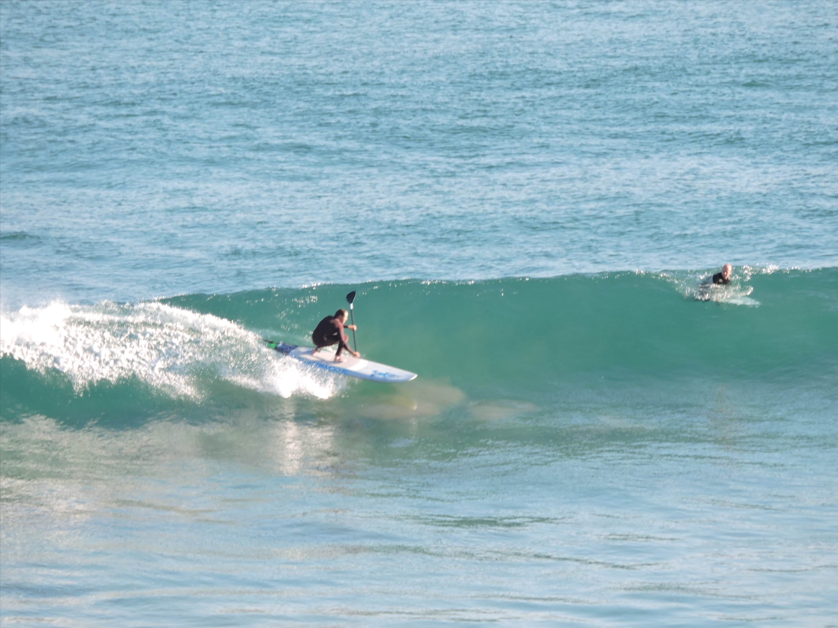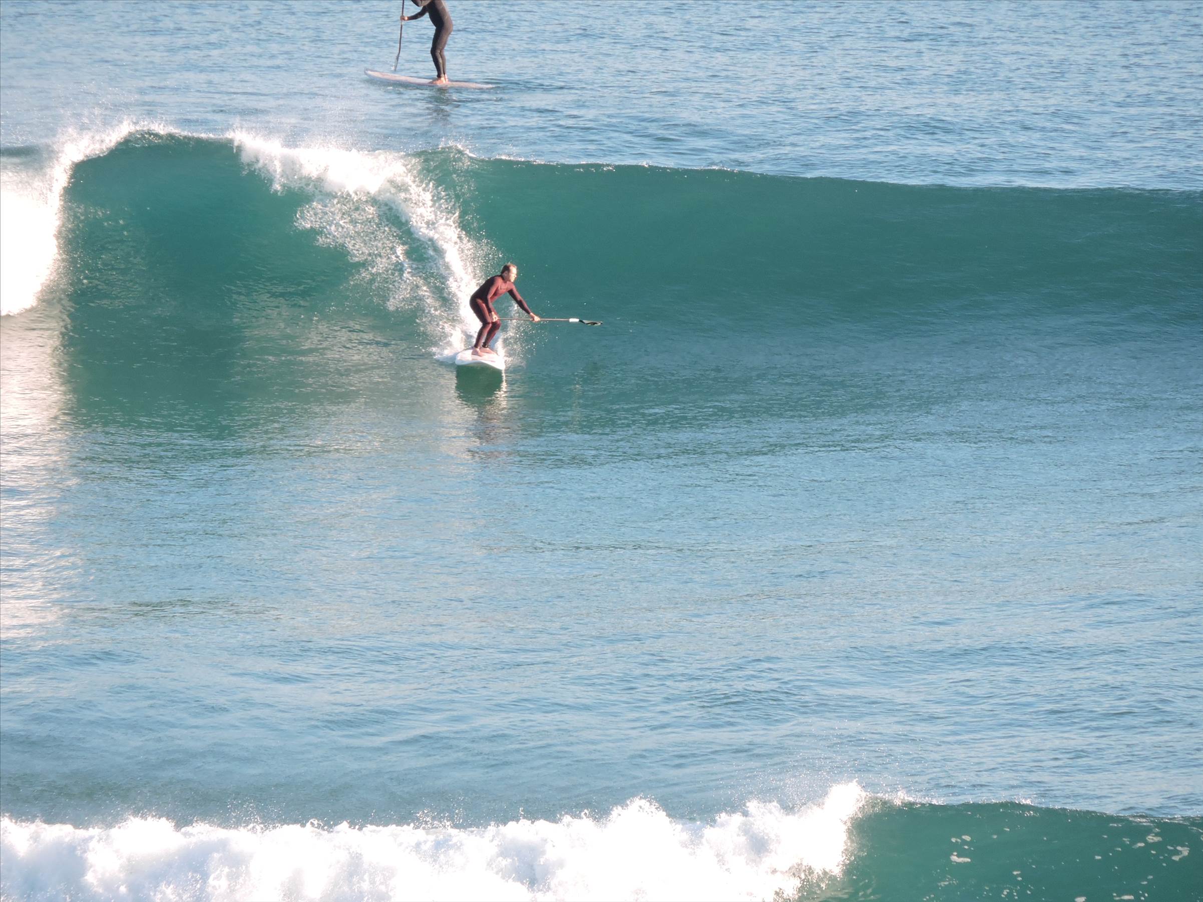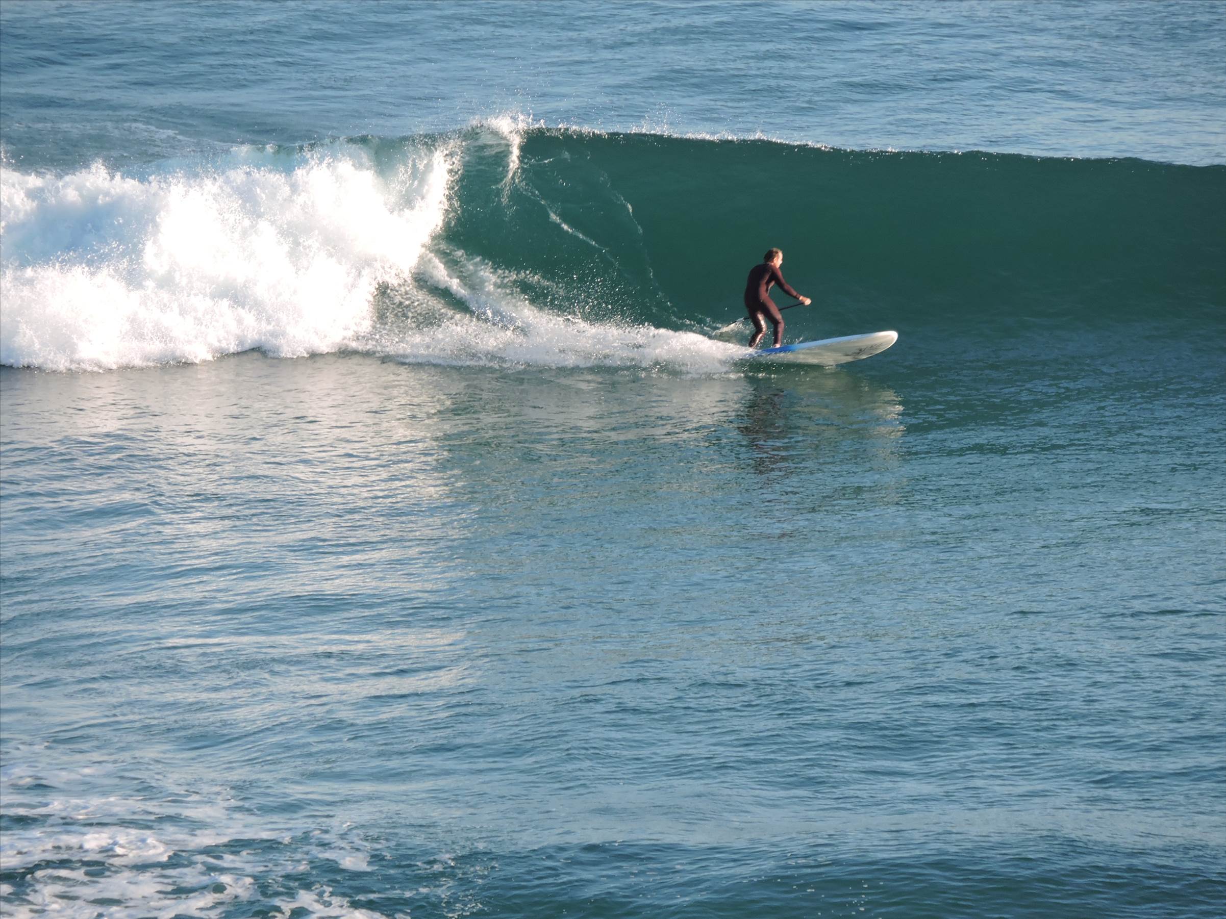 Conditions were very clean with a barely existent side shore, 3'+ of swell on an outgoing tide and amazingly only a handful of crew out at the bowl at 7 am. It would not have excited me that much as a prone paddling surfer yet excited the hell out of me as a SUP surfer.